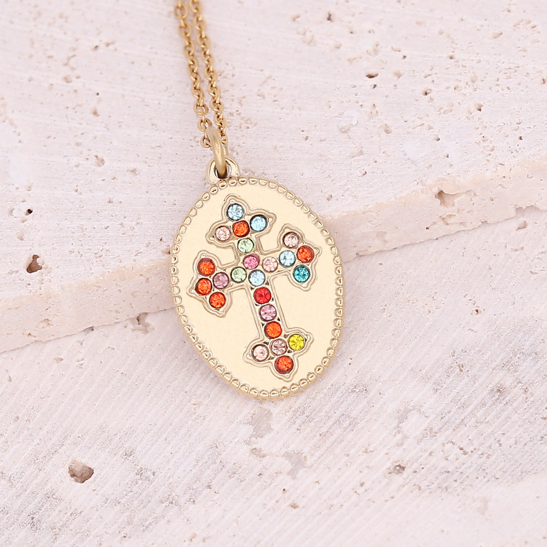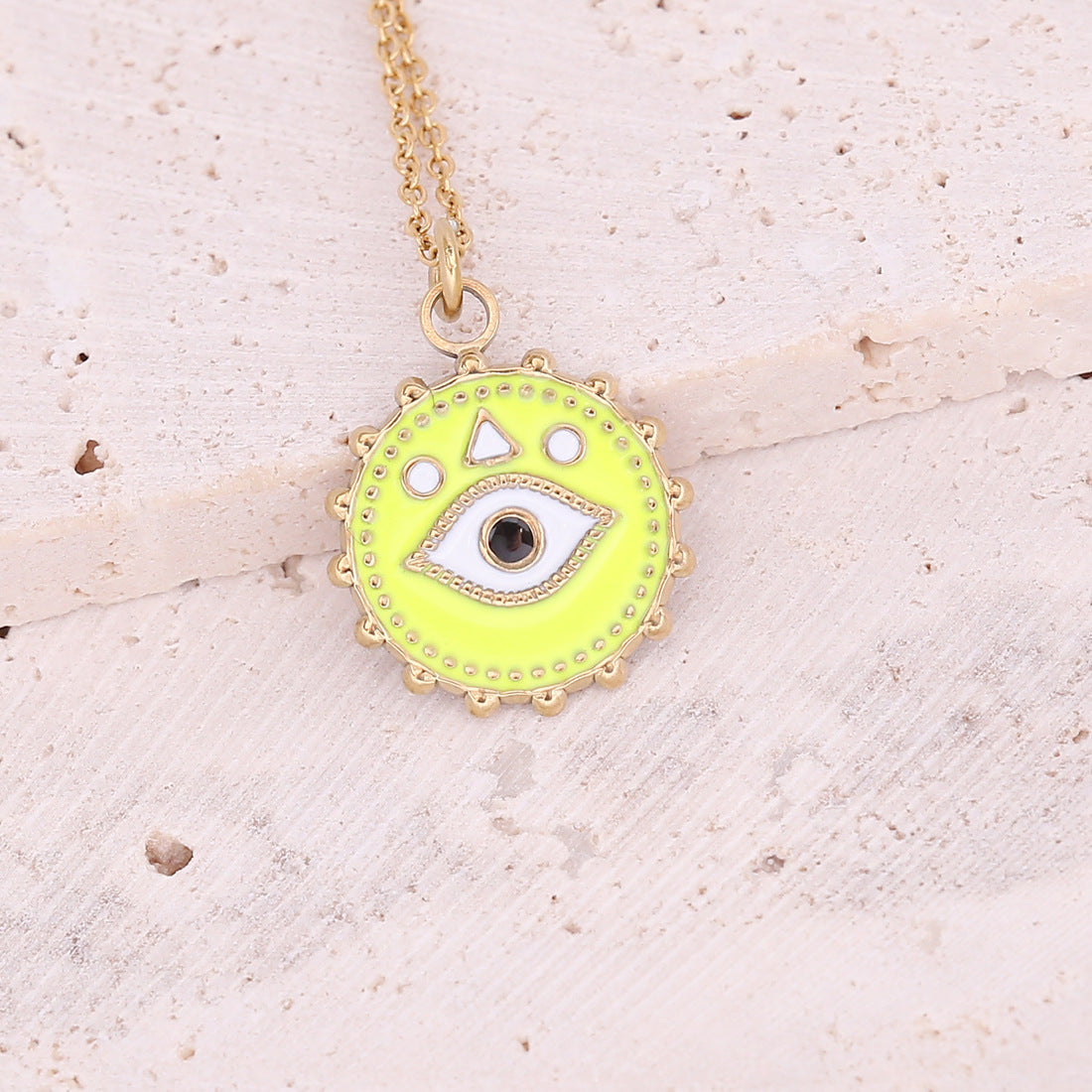 Oil Dripping Eye Pendant Stainless Steel Geometric Cross Necklace with Moon Clavicle Chain