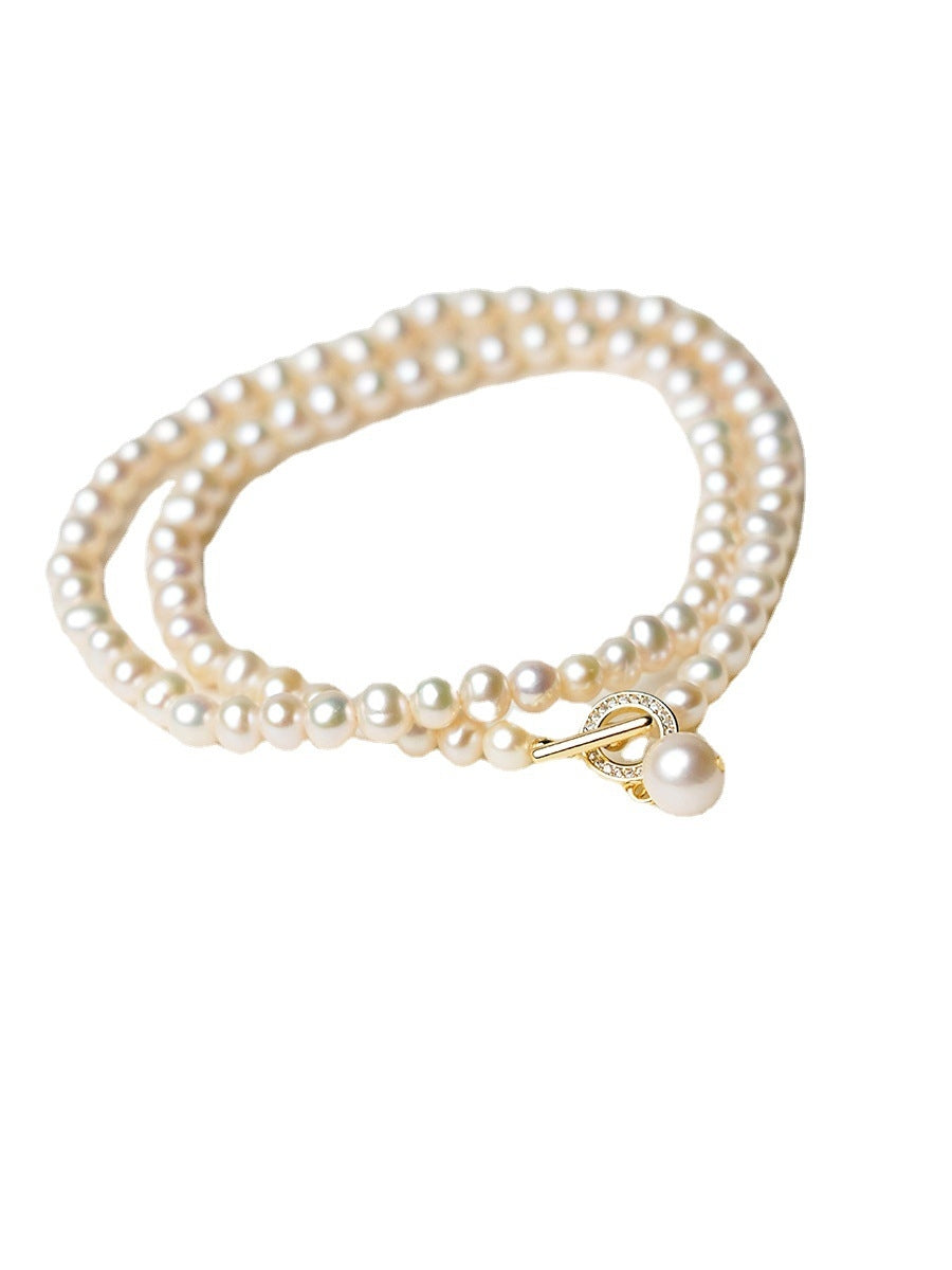 A necklace with a total length of 45cm and a natural pearl of 5-6mm is nearly round