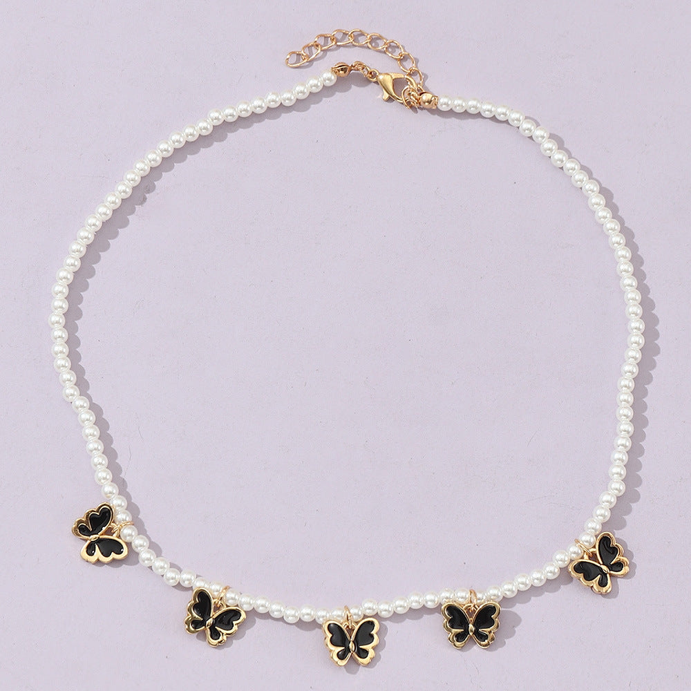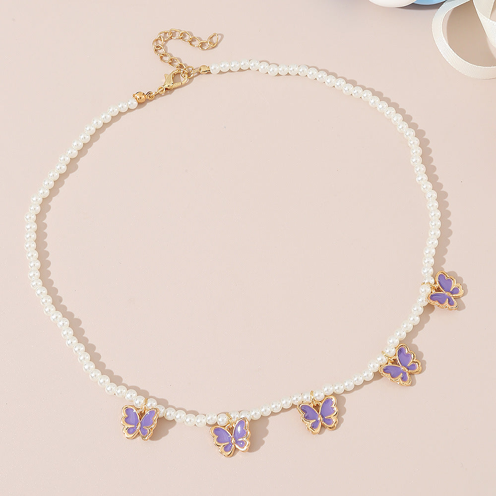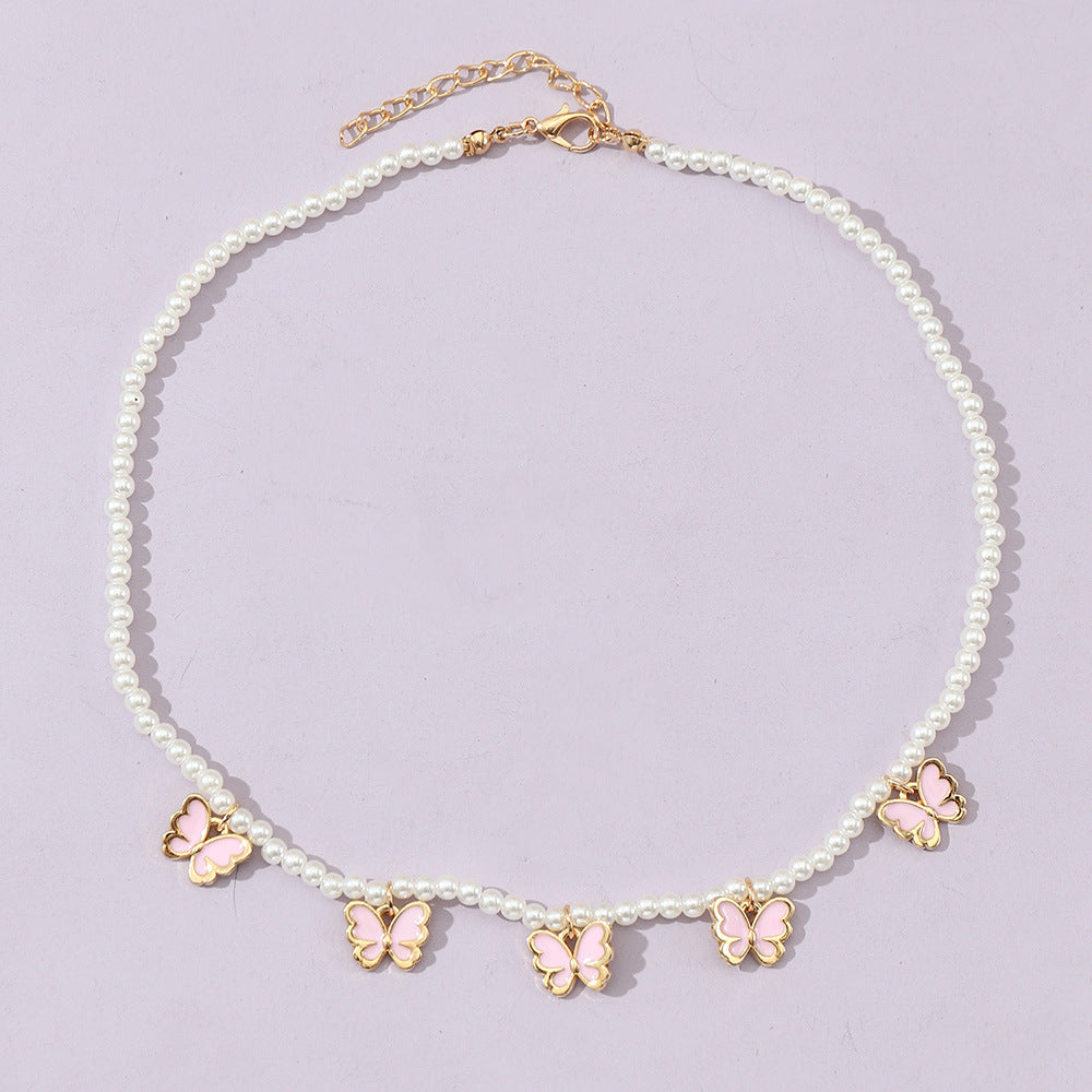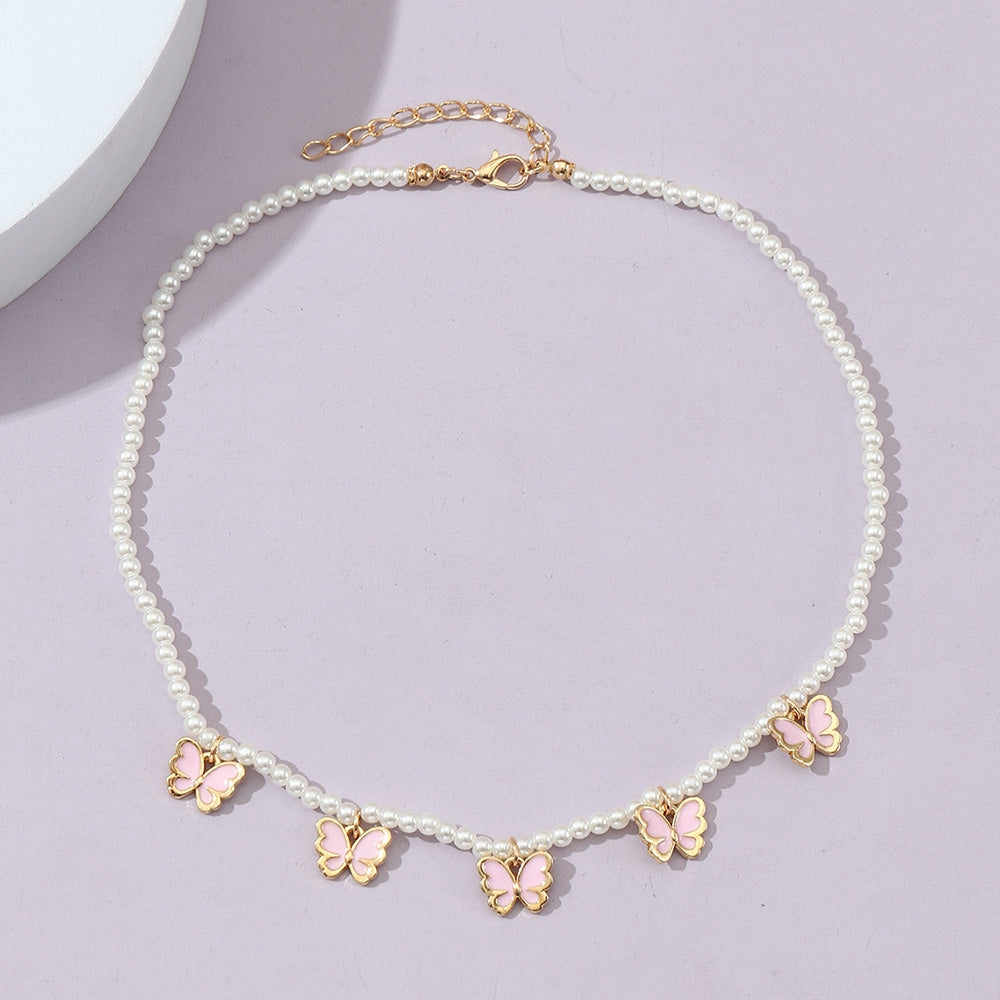 Princess Sweet Butterfly Pearl Pendant Necklace for Girls