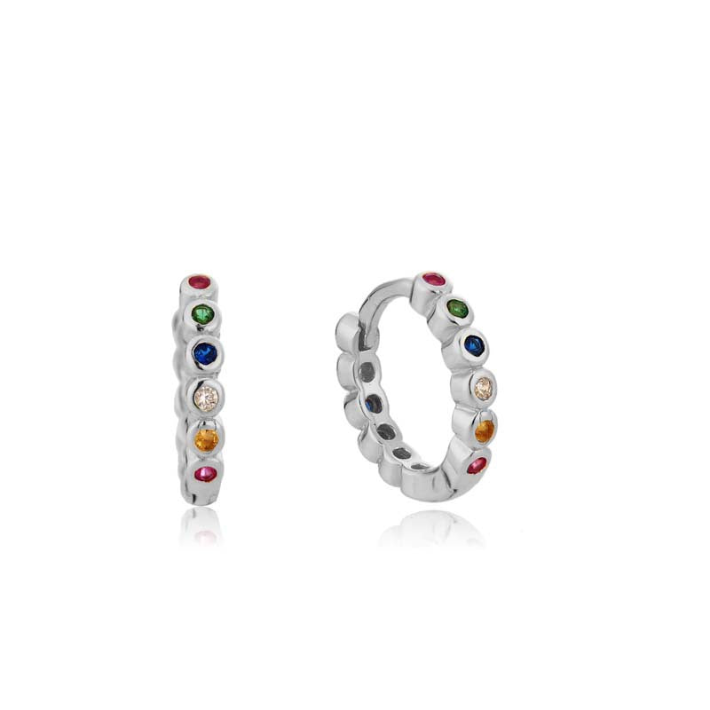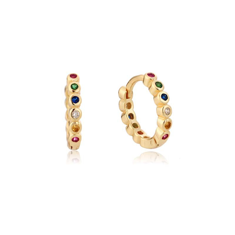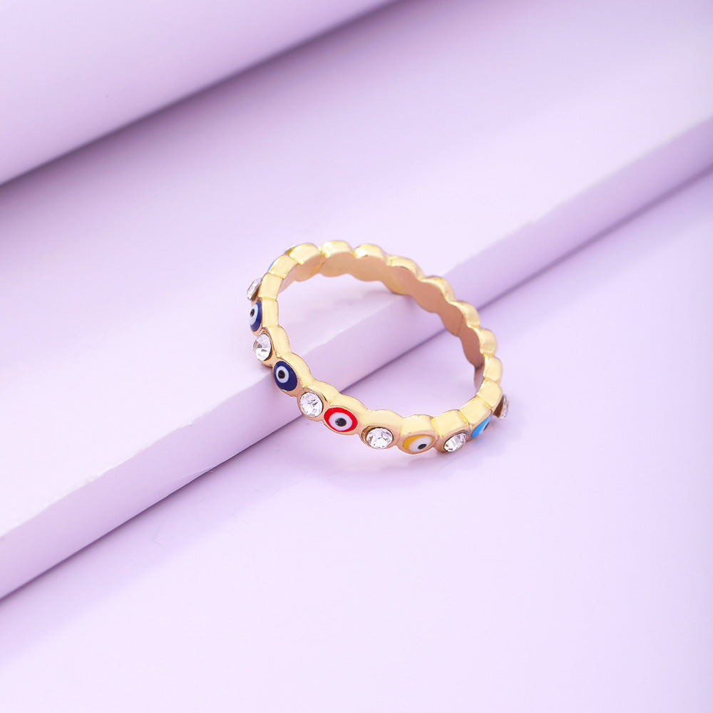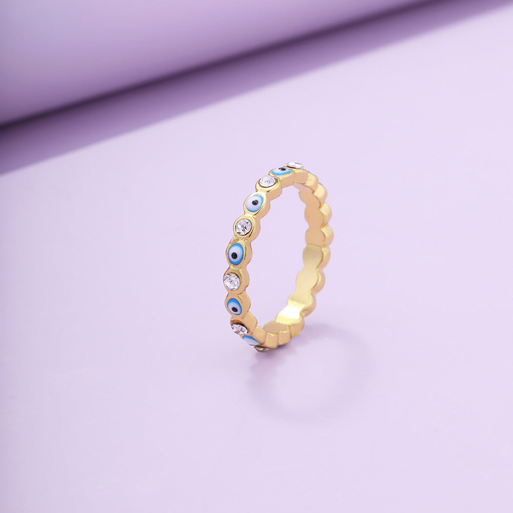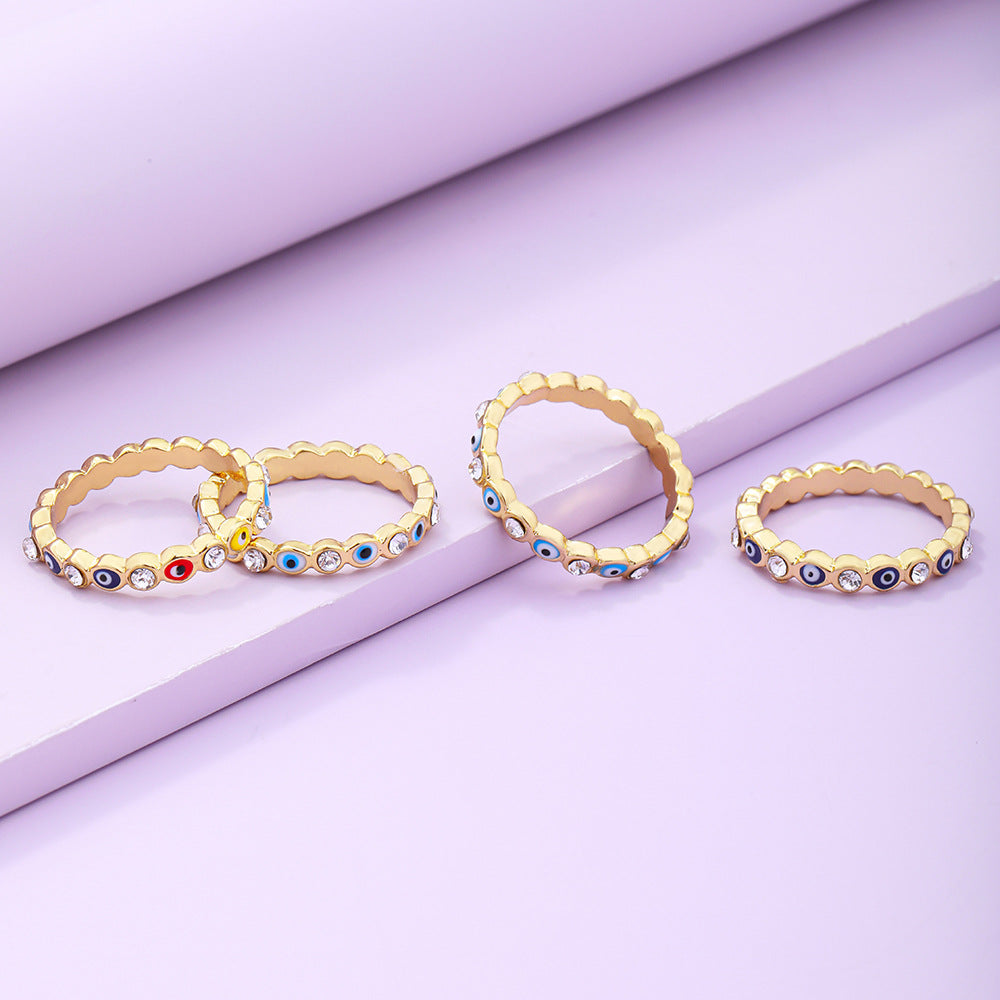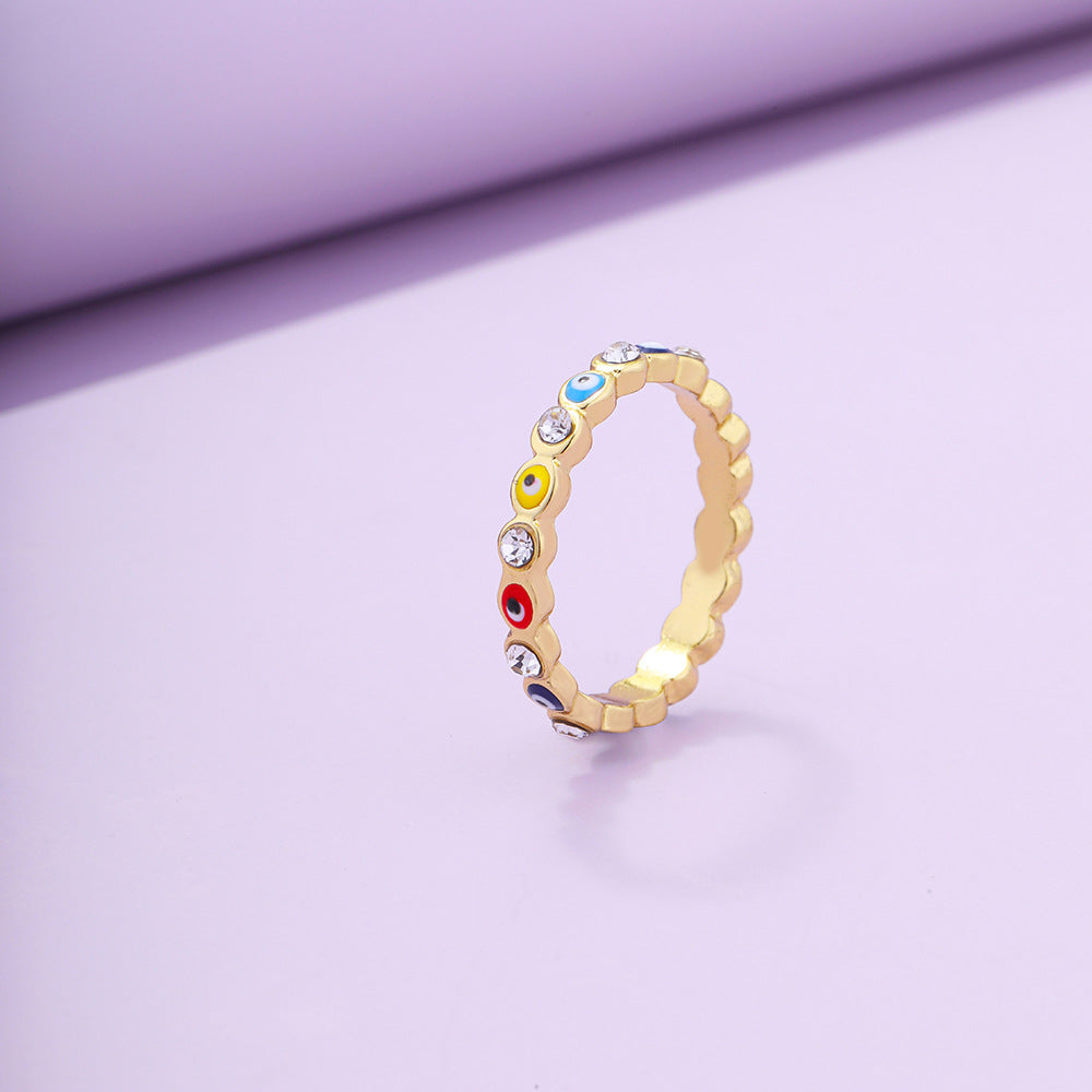 Vintage Blue Eye Ring & Multicolor Zircon Hoop Earrings Set