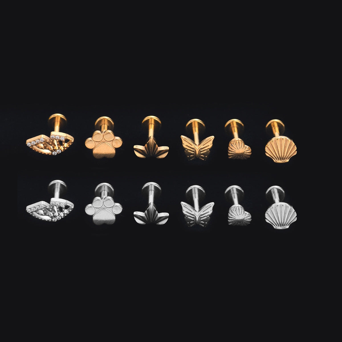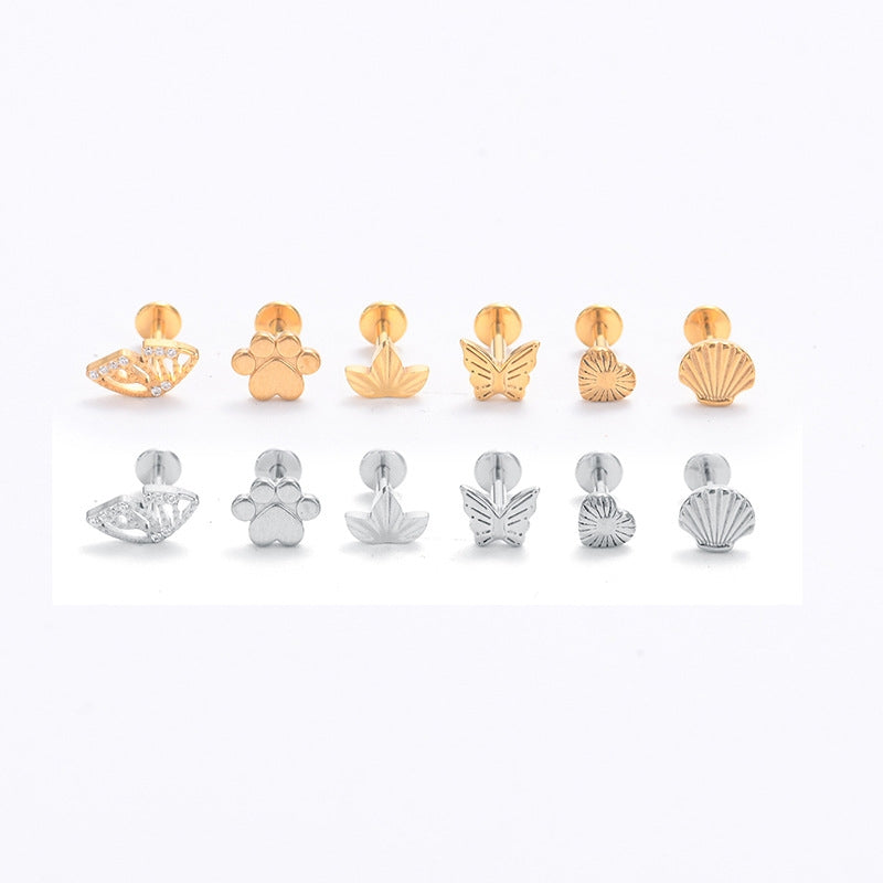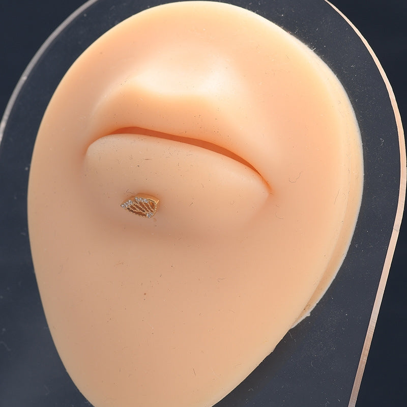 Retro Butterfly Wing Titanium Steel Zircon Lip and Ear Studs