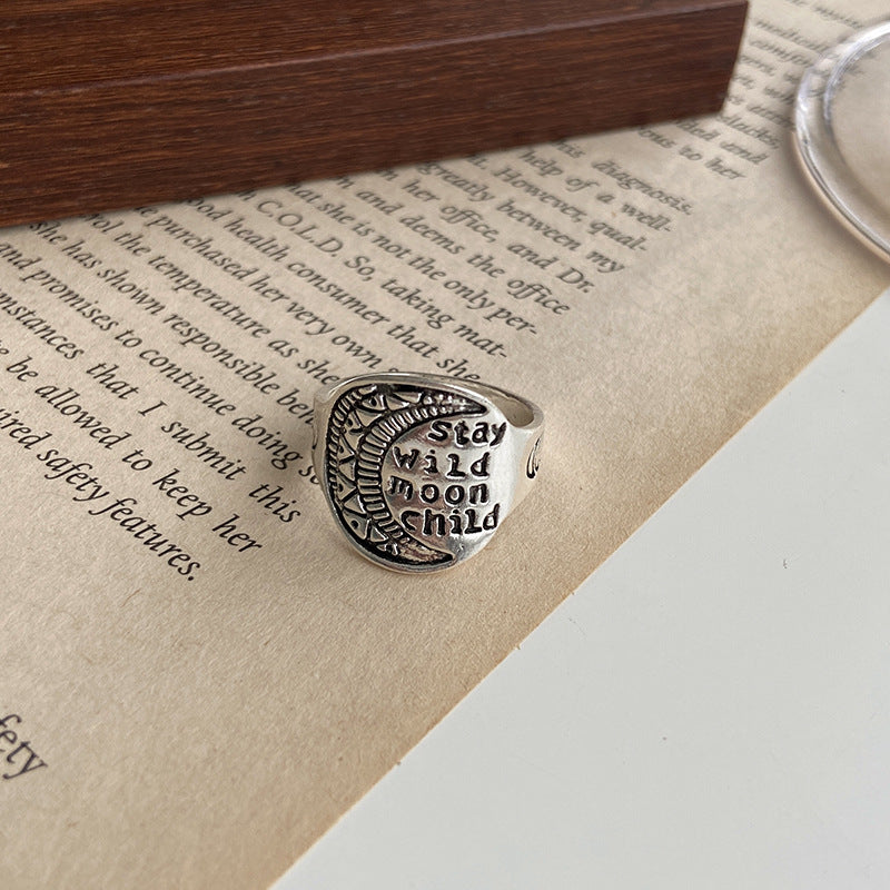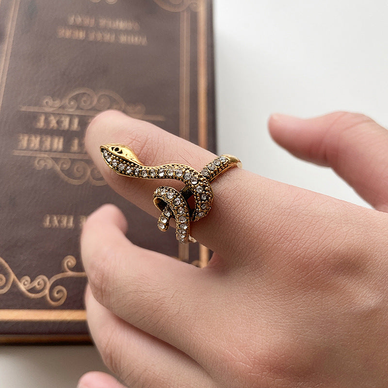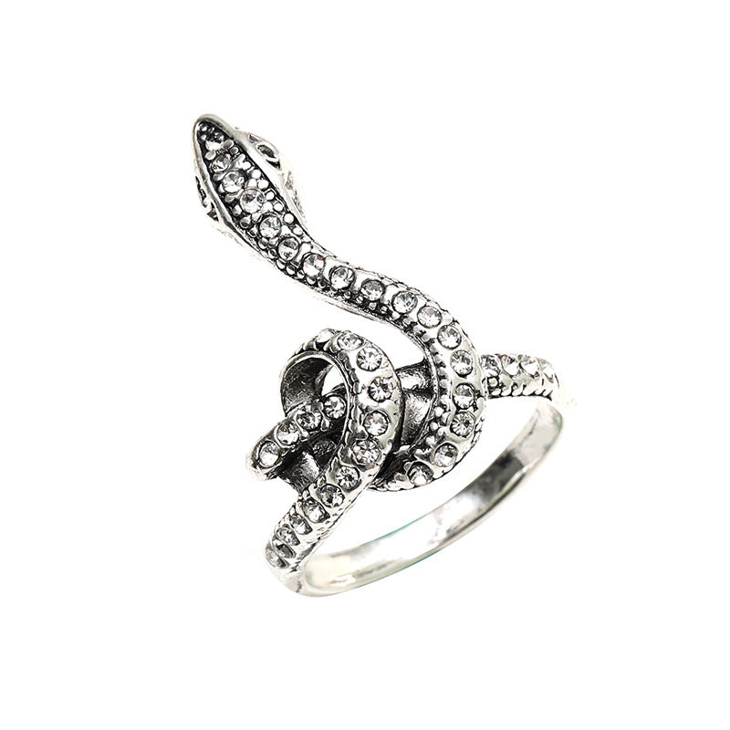 European Retro Carved Snake Ring in Ancient Silver for Women