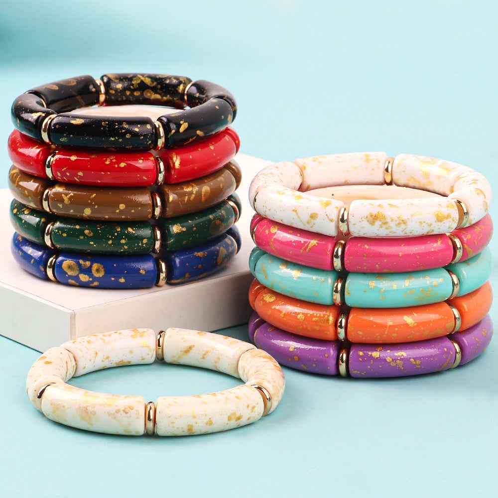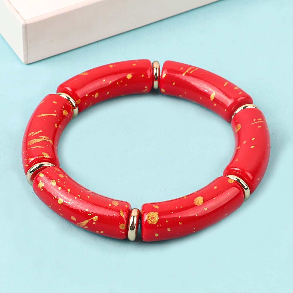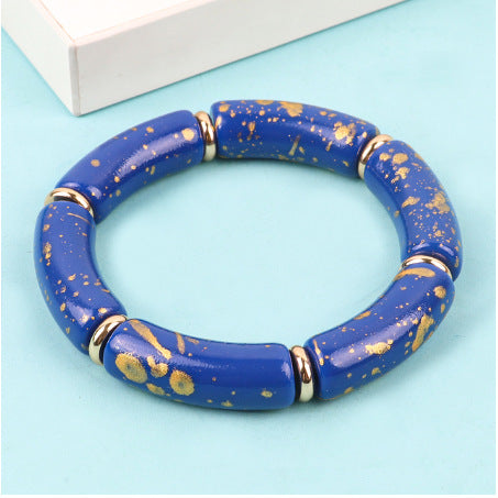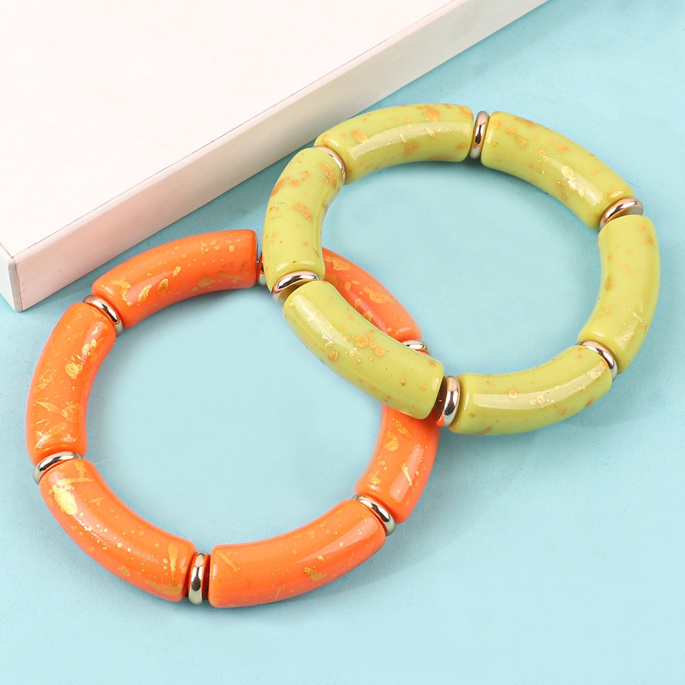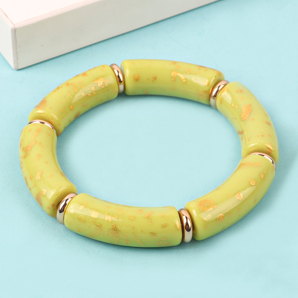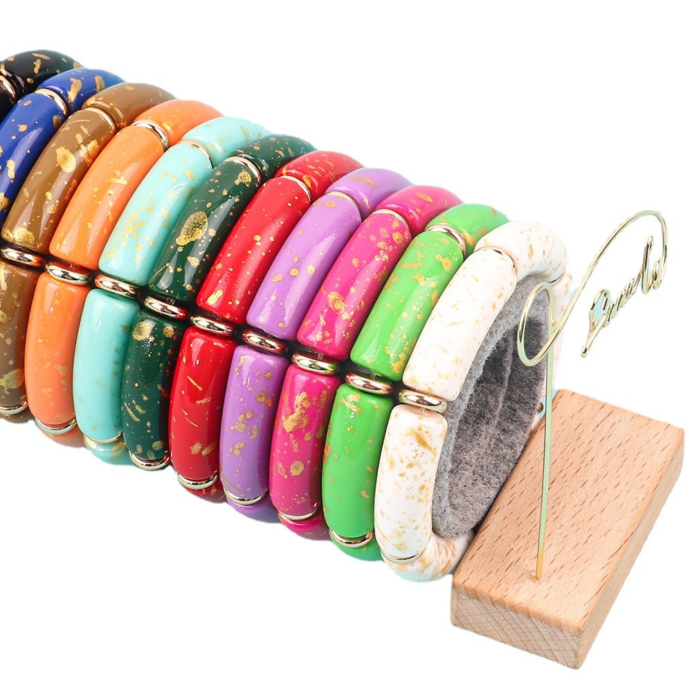 Retro Acrylic Color Block Beaded Women's Bangle Bracelet