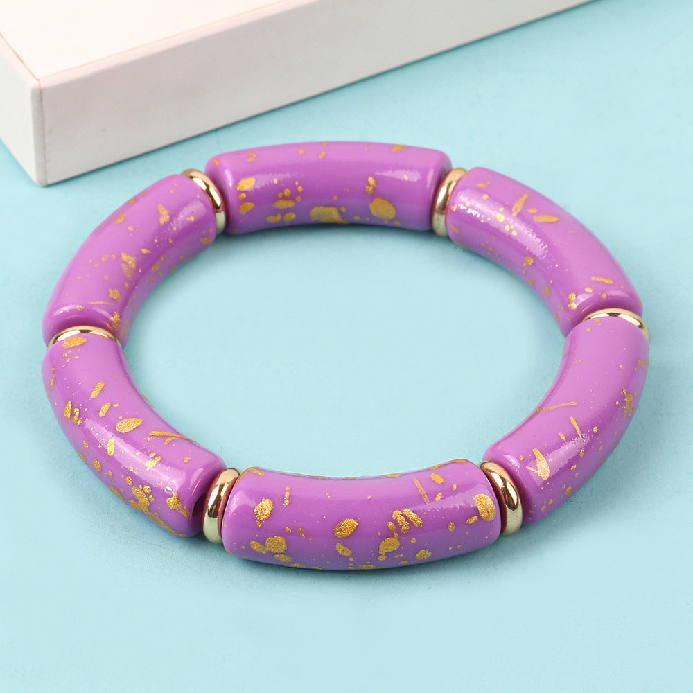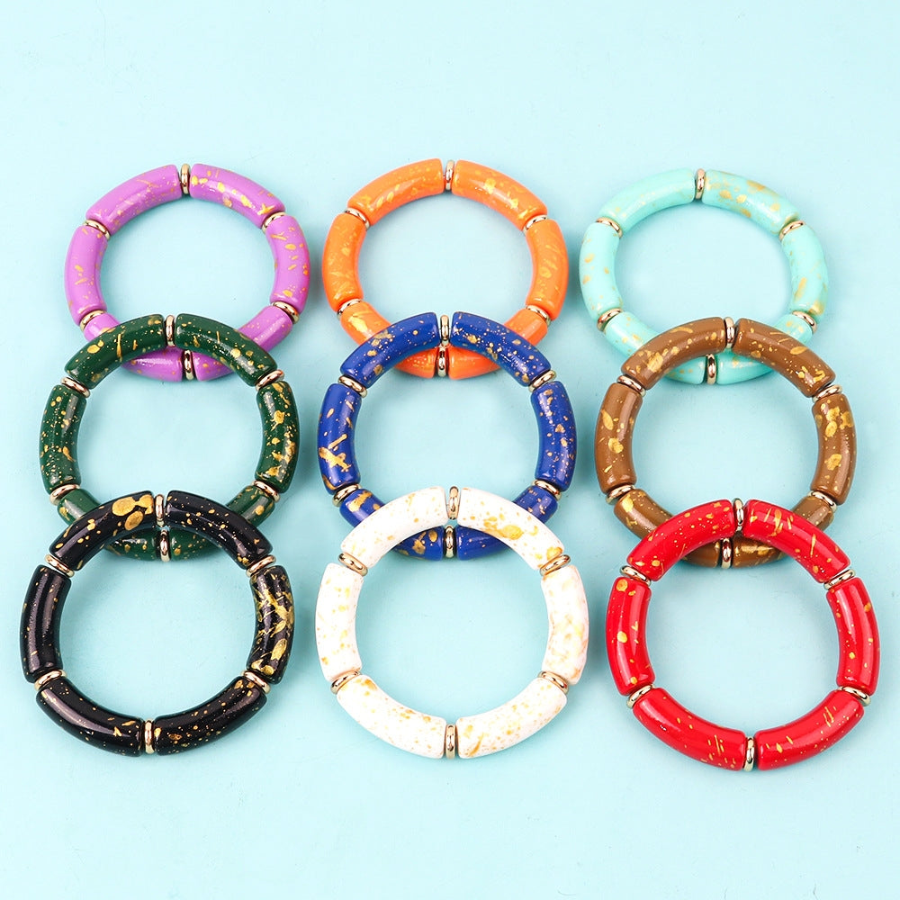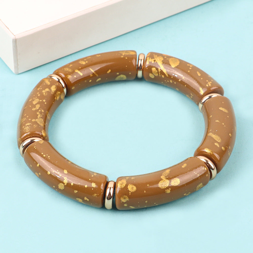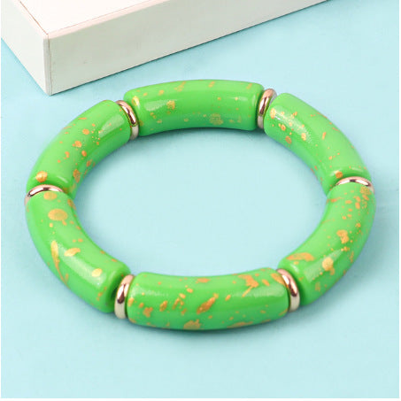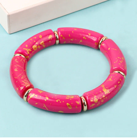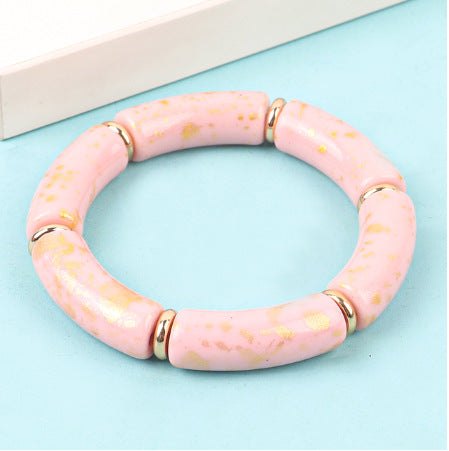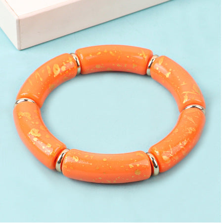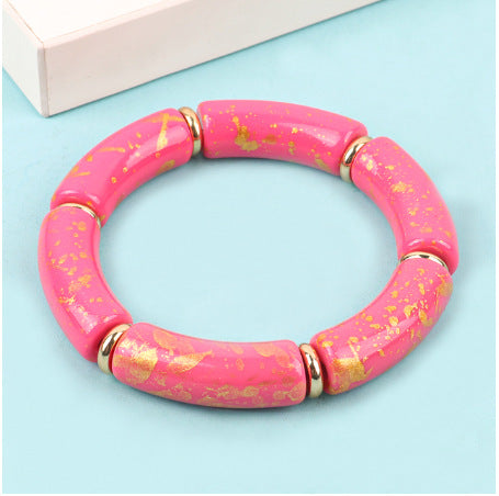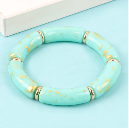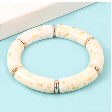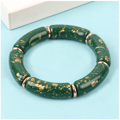 Retro Acrylic Color Block Beaded Women's Bangle Bracelet