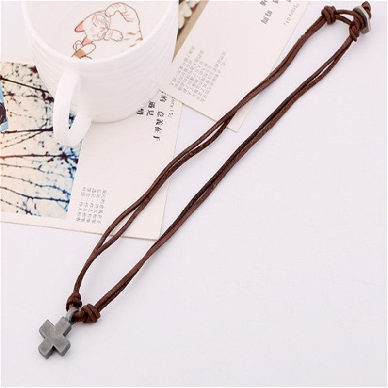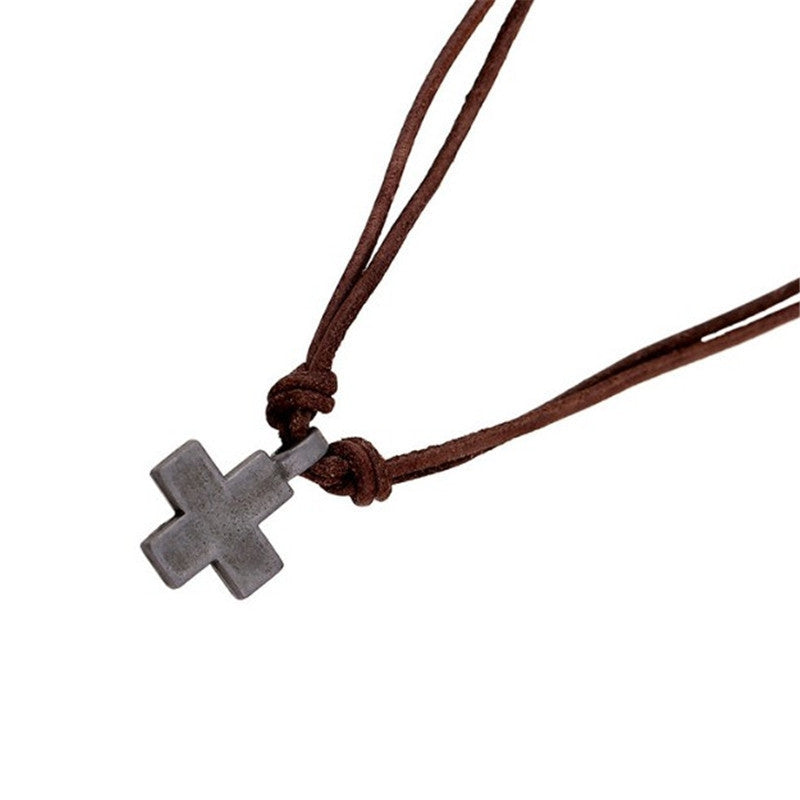 Retro Cross Alloy Braided Cowhide Men's Pendant Necklace