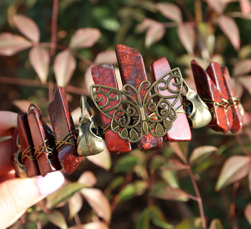 Red agate, ancient green crow, butterfly, black headband + ancient bronze line