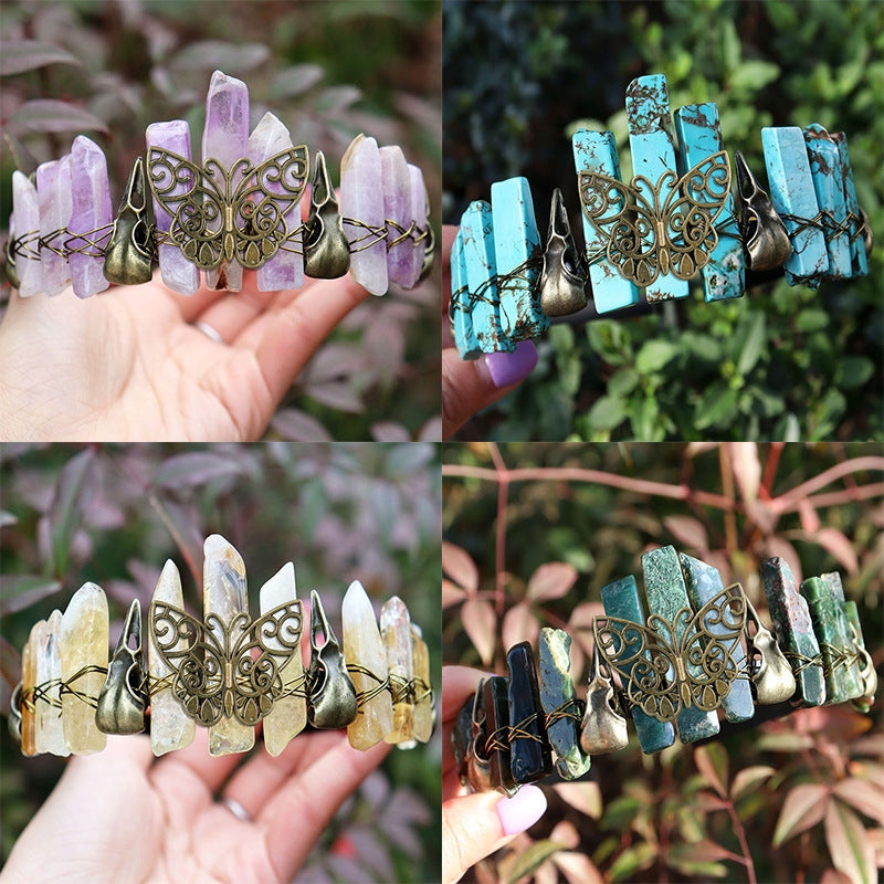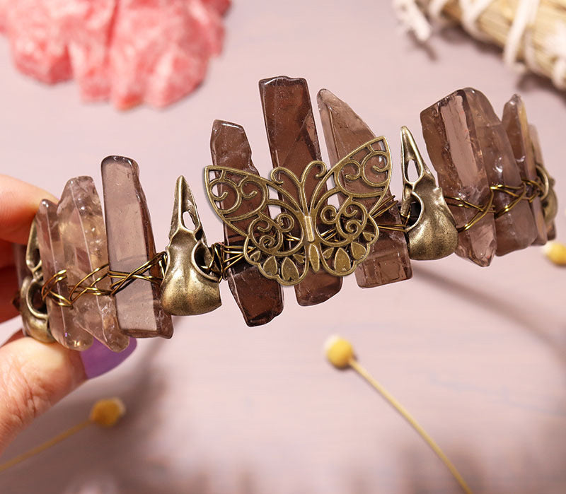 Retro Bronze Viking Raven Butterfly Crystal Hairband