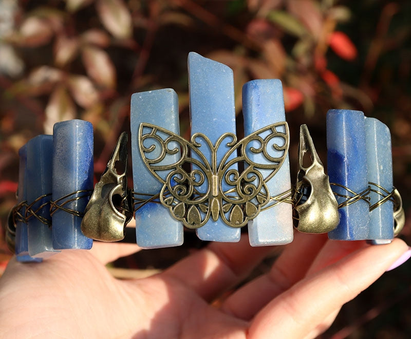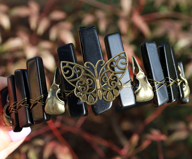 Obsidian, ancient blue, crow, butterfly, black headband + ancient bronze line