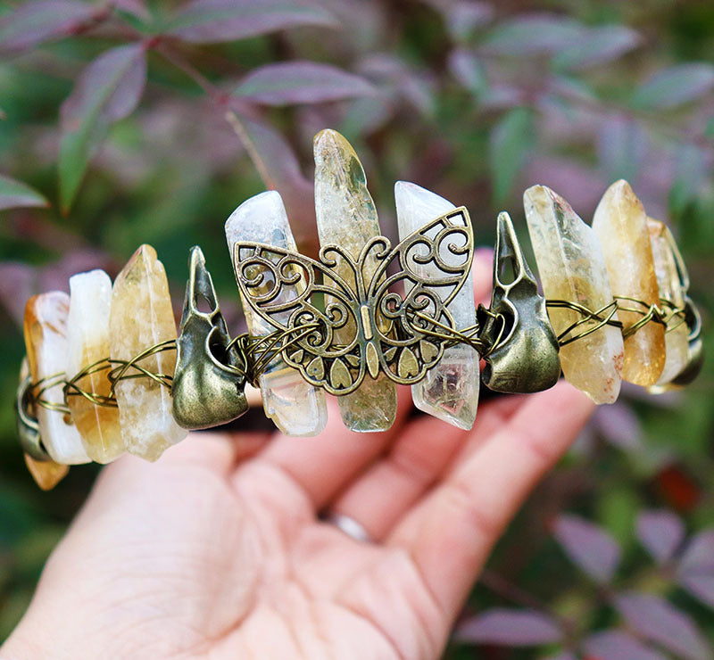 Citrine ancient green crow butterfly black headband + ancient bronze line