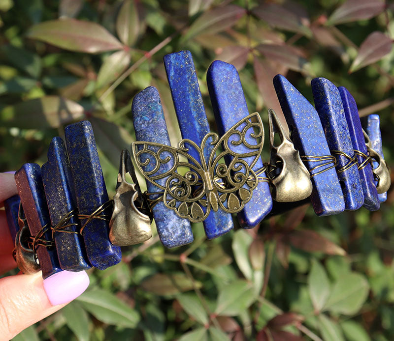Lapis lazuli ancient green crow butterfly black headband + ancient bronze line