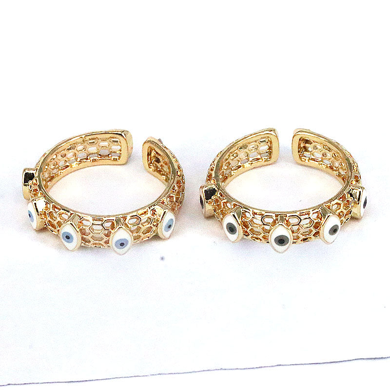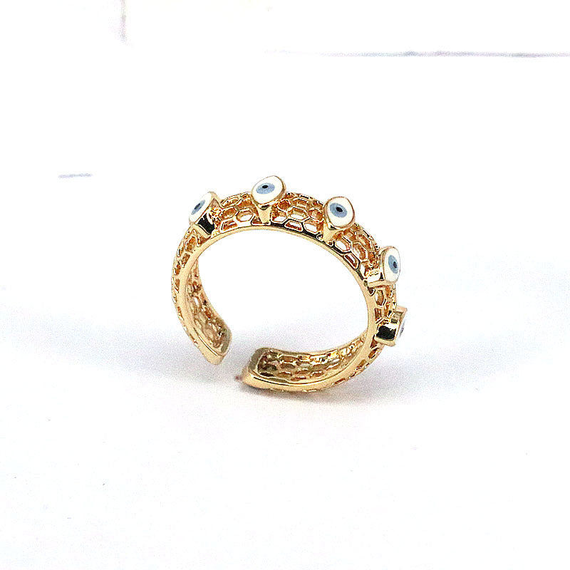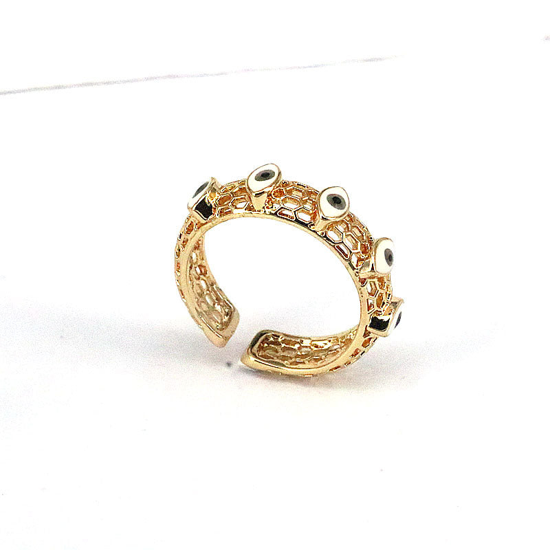 Retro Geometric Evil Eye Gold Plated Open Ring