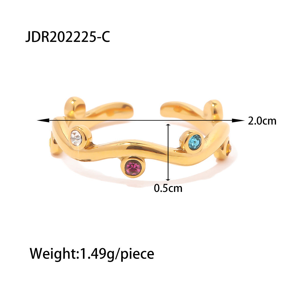 Retro Geometric 18k Gold Plated Stainless Steel Open Ring with White Pearl