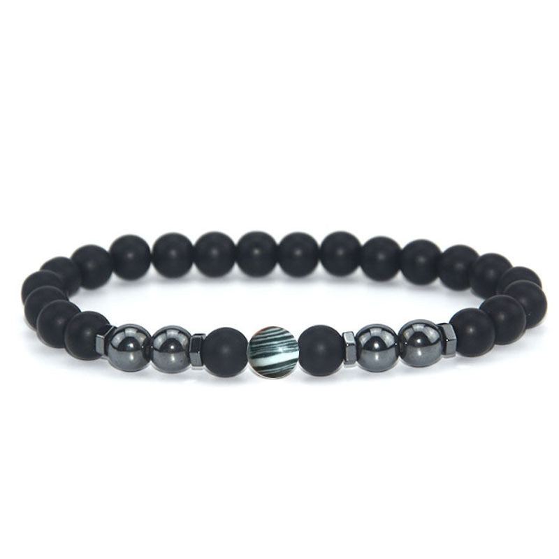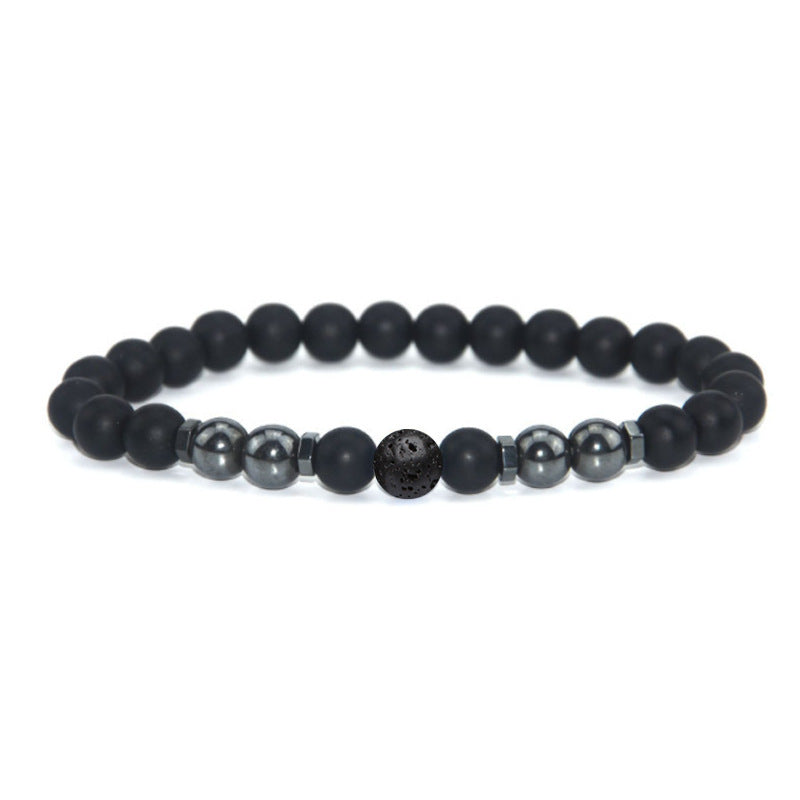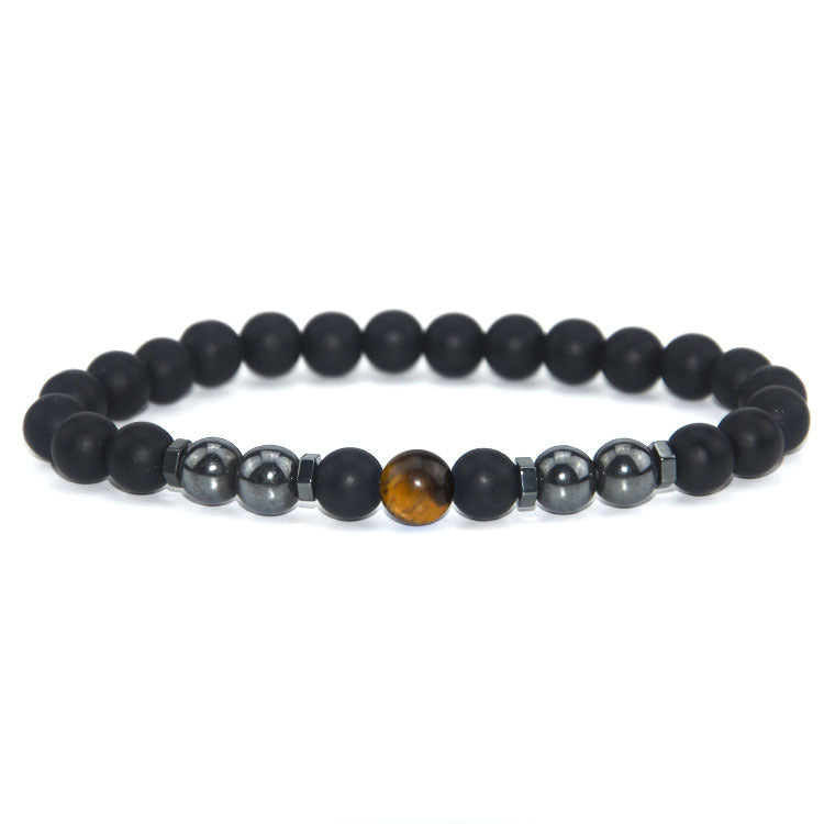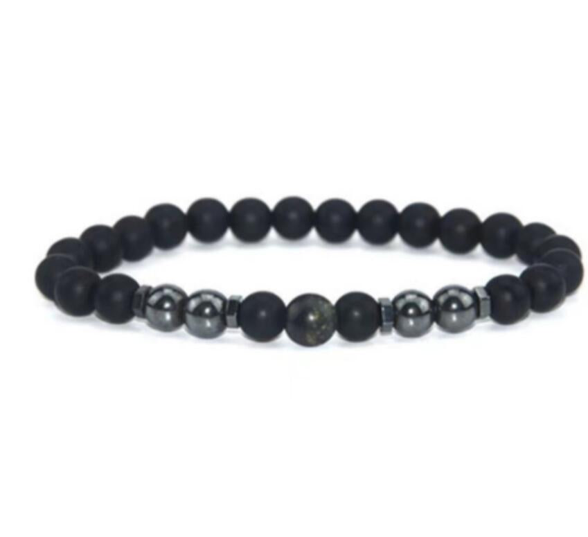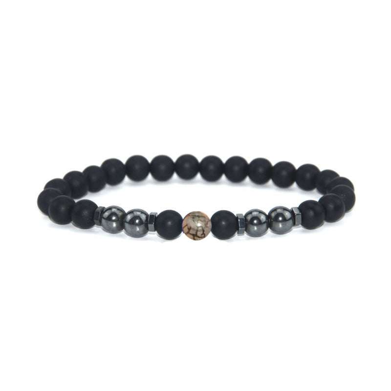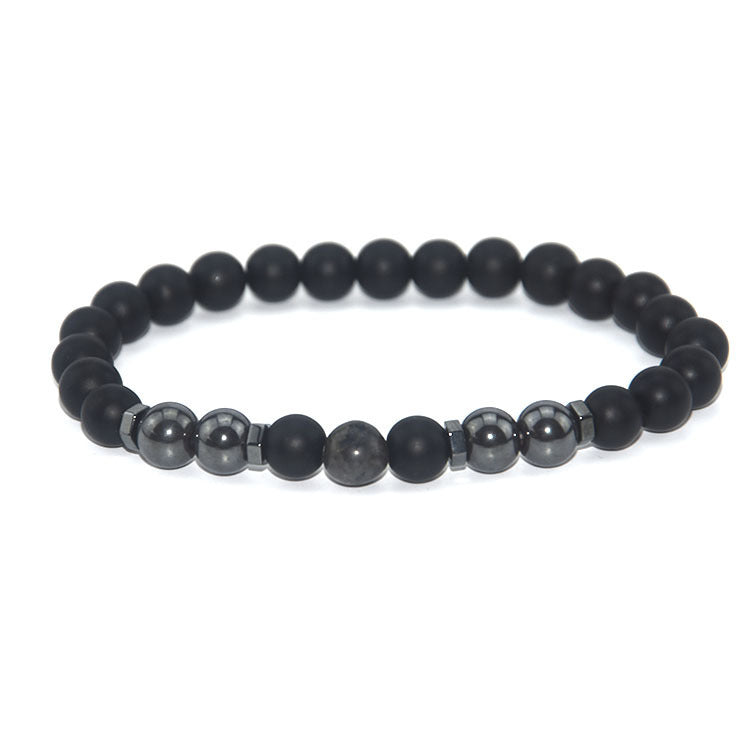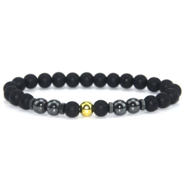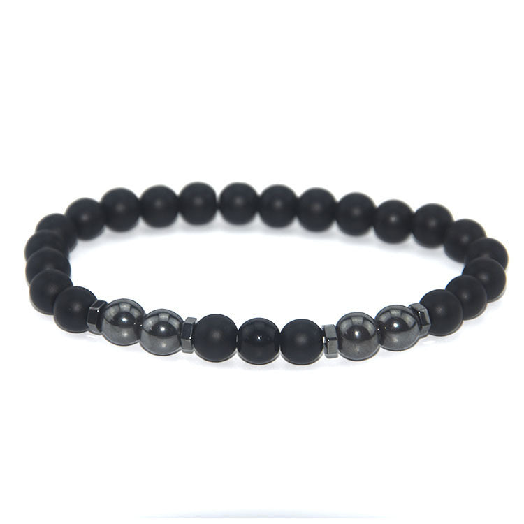 Retro Matte Black Magnetic Stone Beaded Anklet