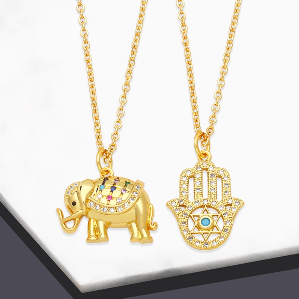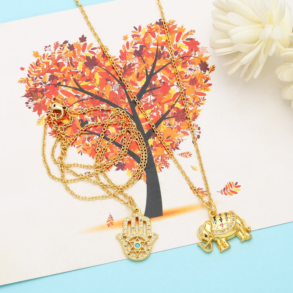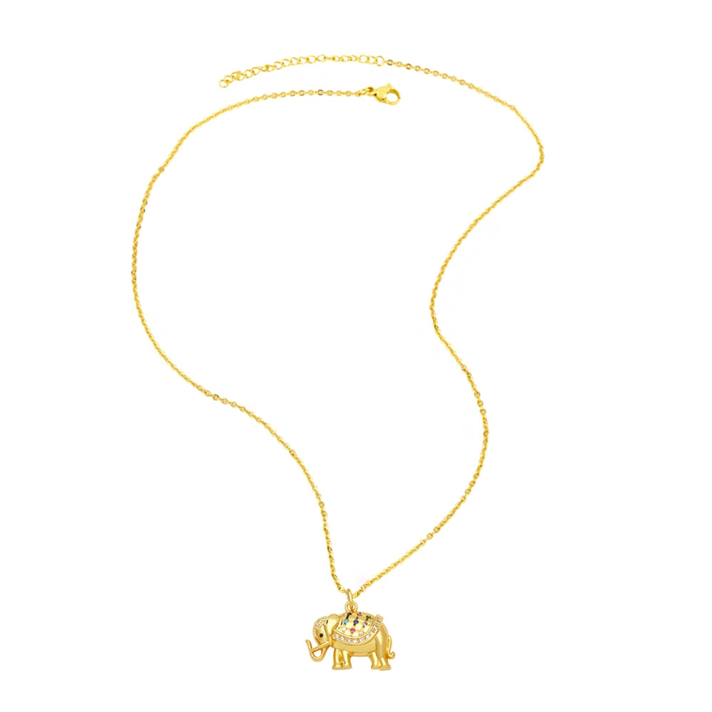 Retro Elephant Zircon Pendant Necklace in Copper Gold Plated Finish