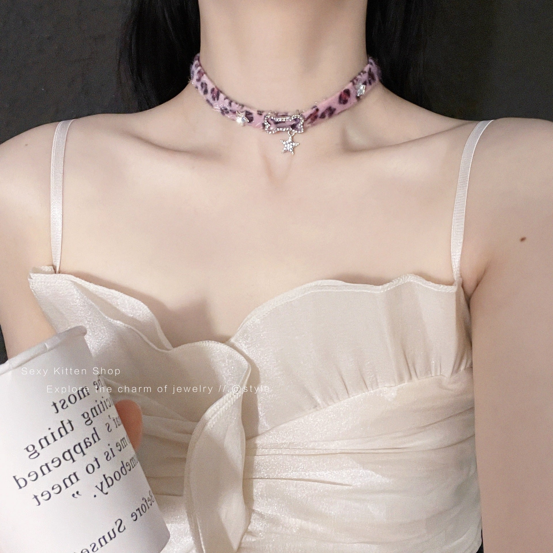 Retro Purple Furry Pentagram Choker Necklace with Rhinestones and Synthetic Alloy Design