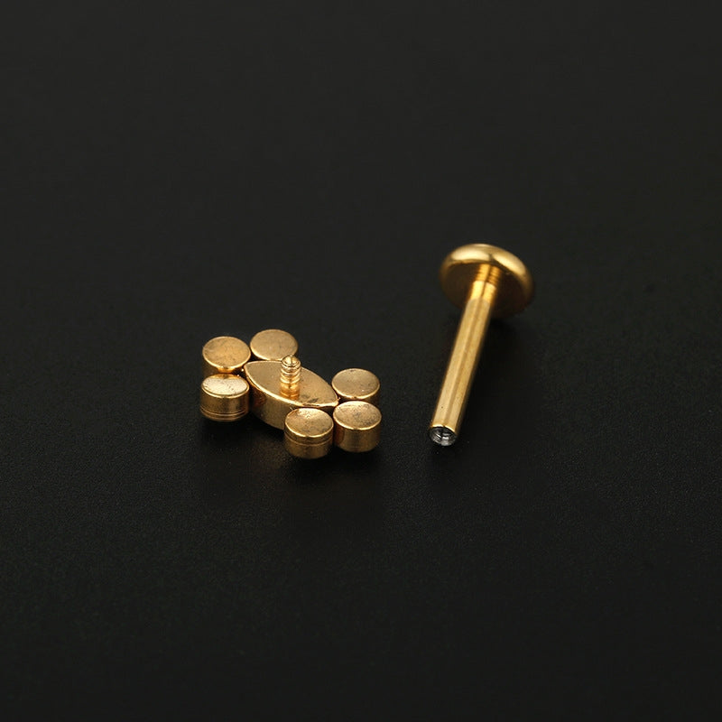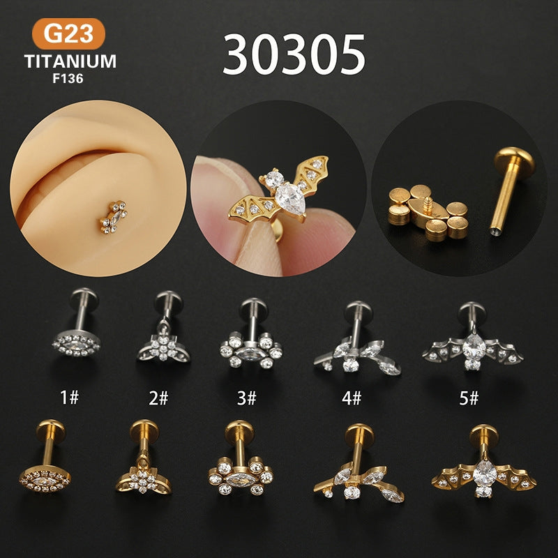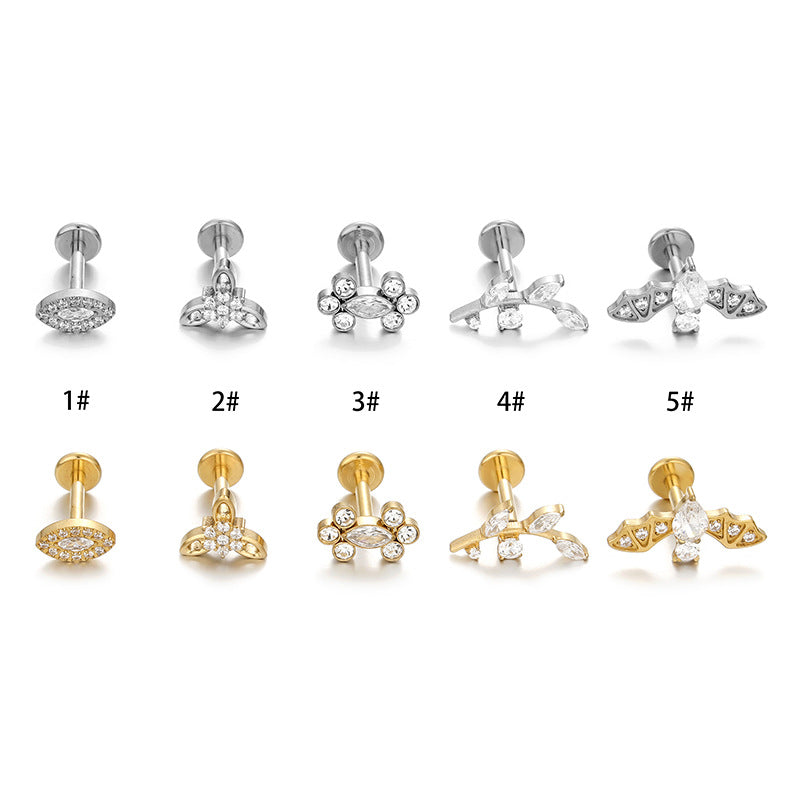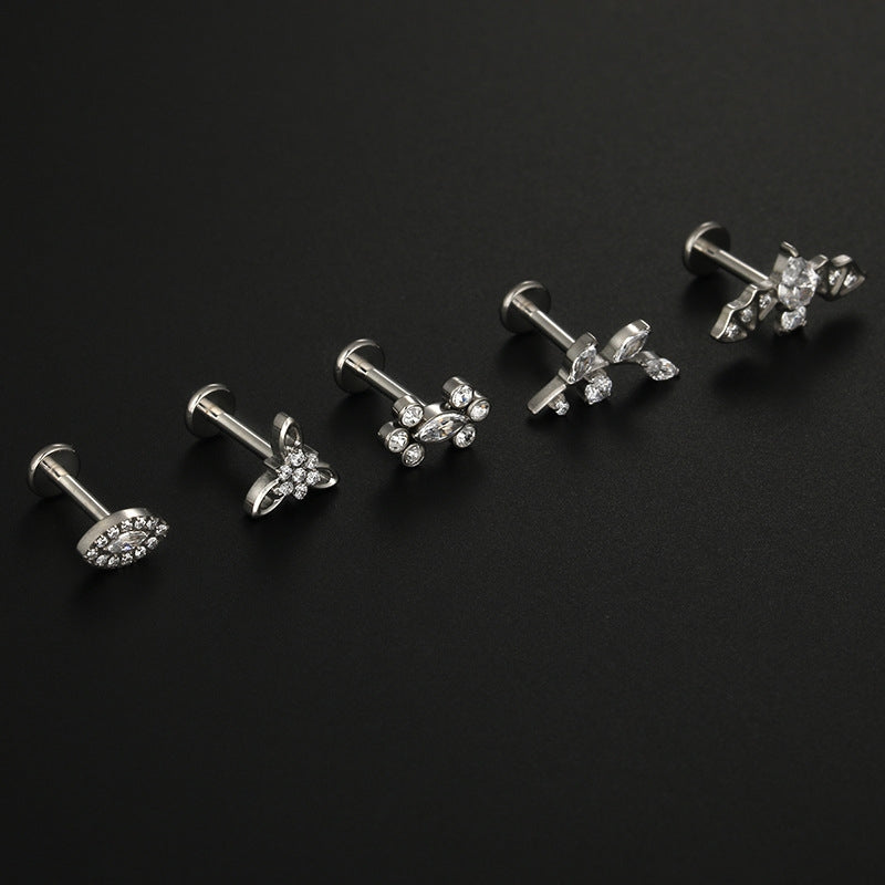 Retro Leaf & Eye Flower Titanium Steel Zircon Inlaid Body Piercing Stud