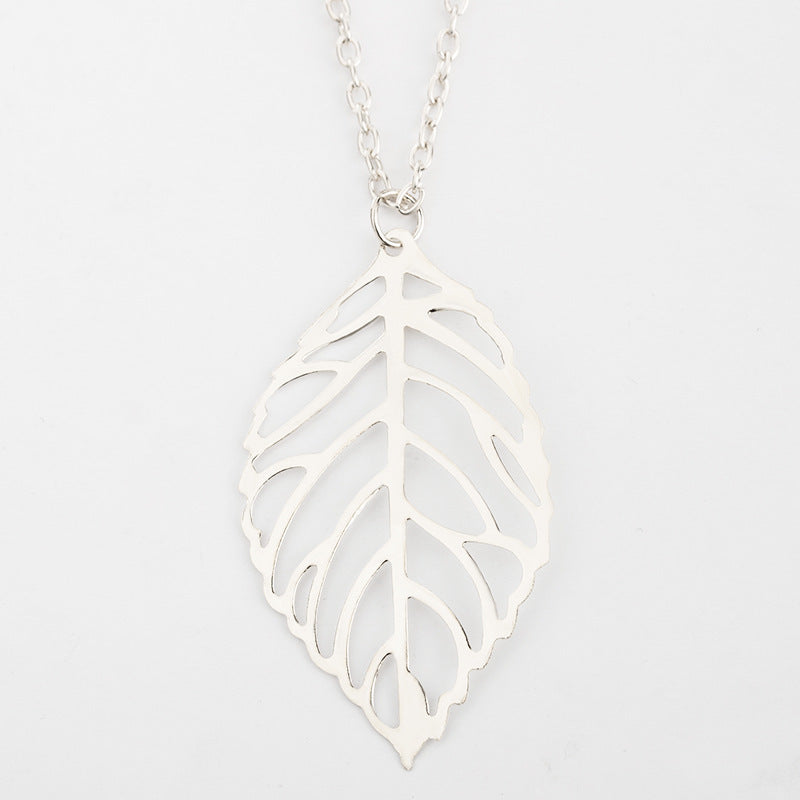 Retro Metal Leaf Pendant Necklace - Vintage Style Hollow Design