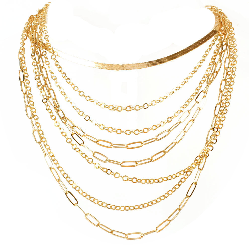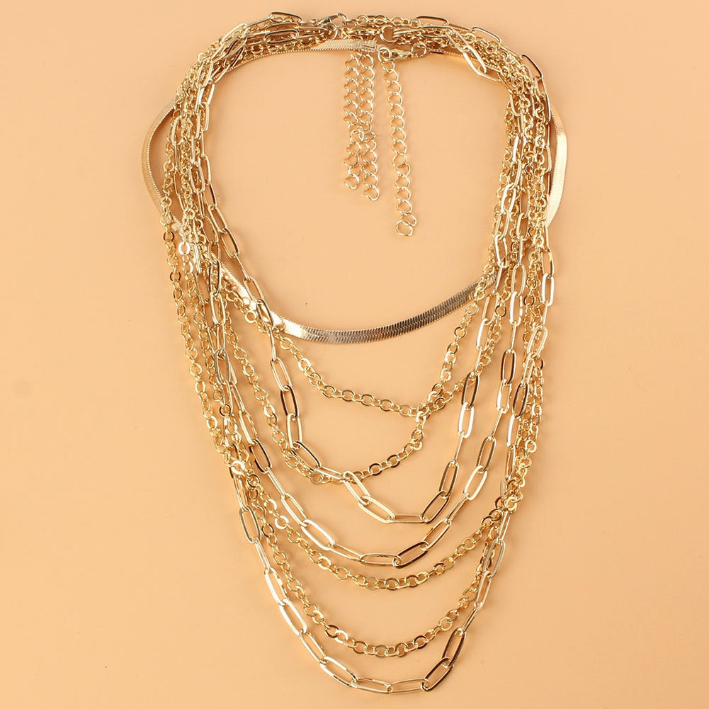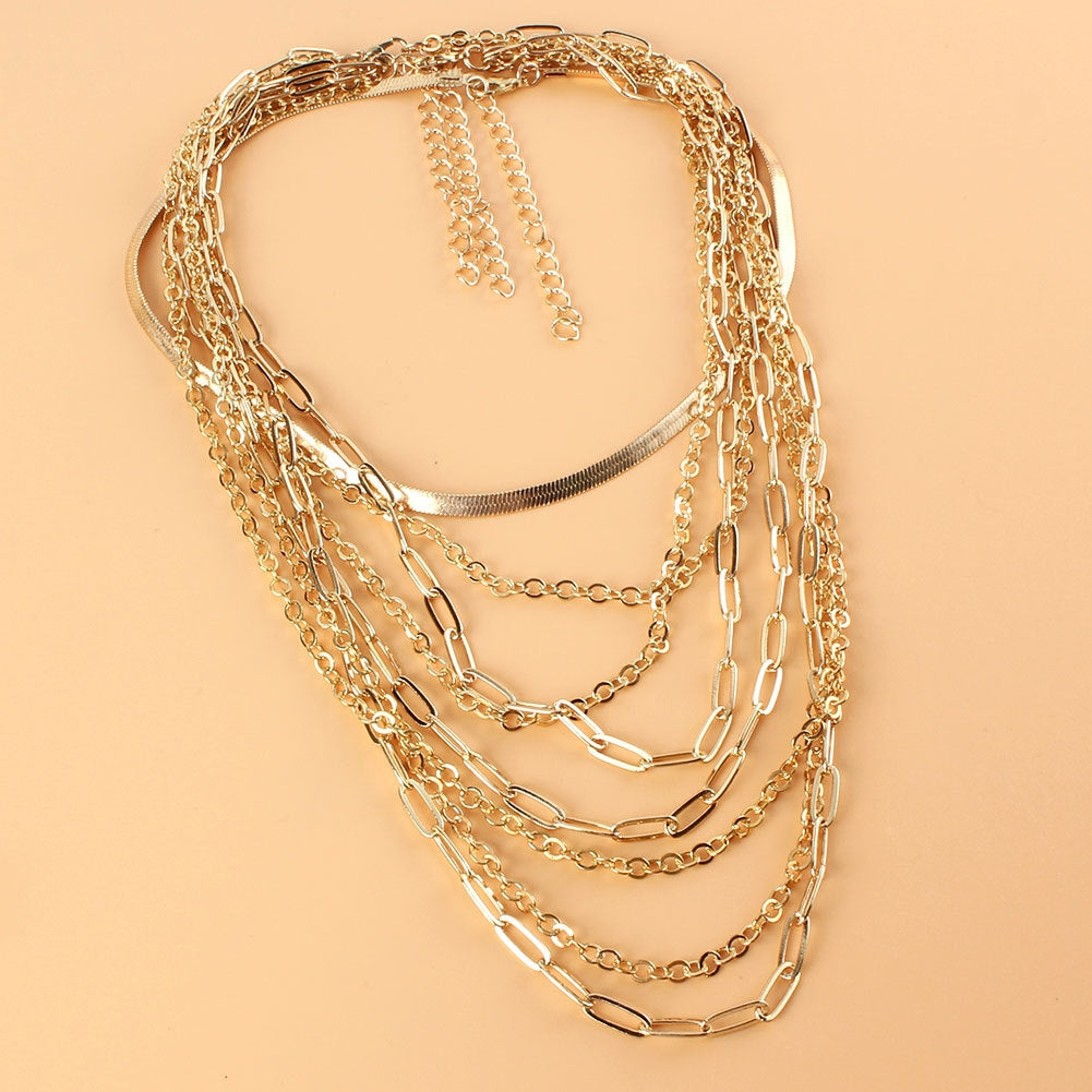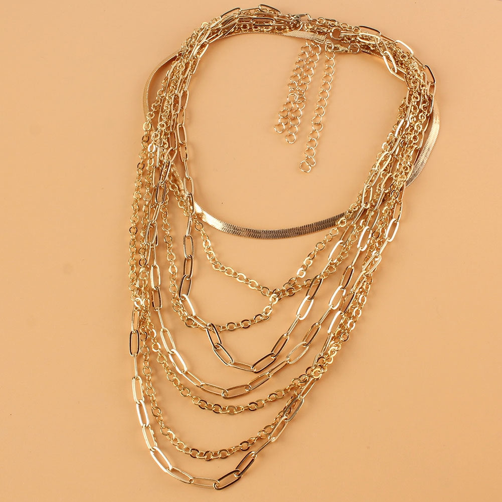 Retro Multi-layer Geometric Gold Statement Necklace for Women