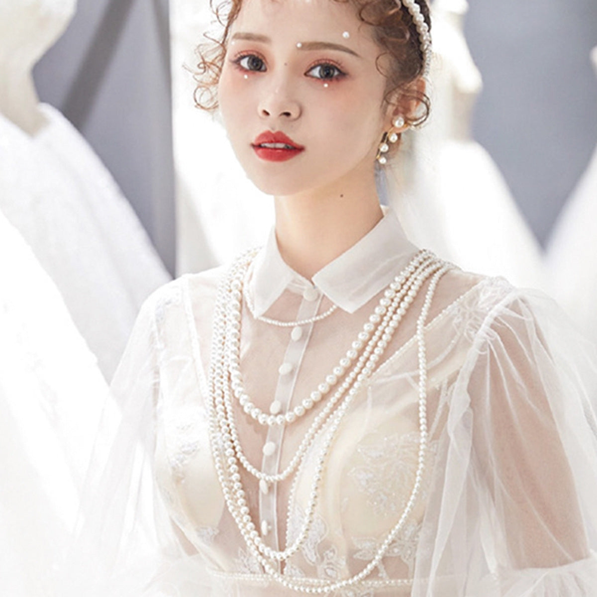 Retro Multi-layered Pearl Bridal Wedding Necklace