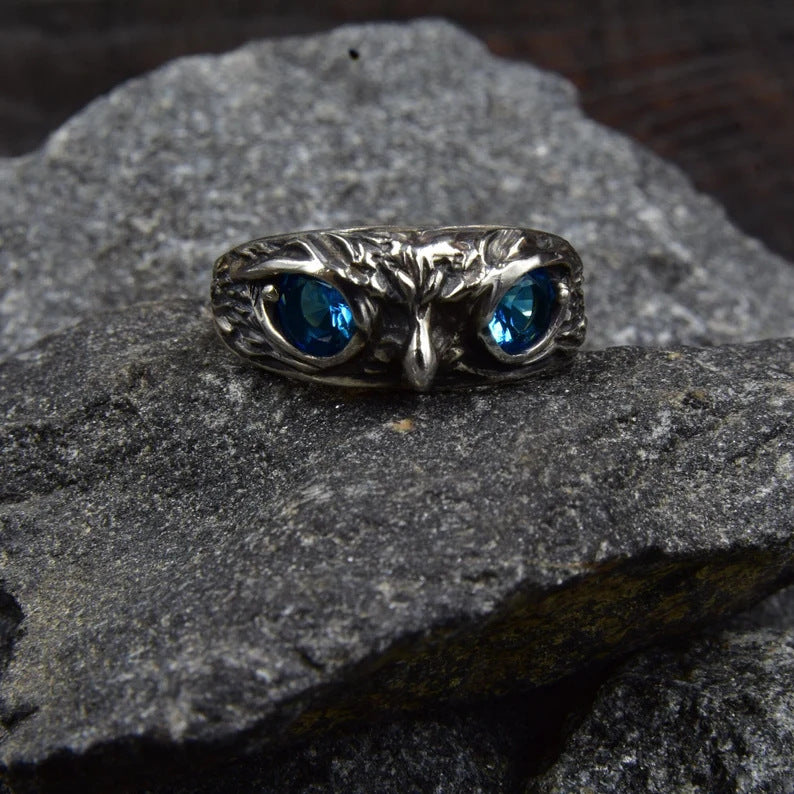 Retro Blue-Eyed Owl Adjustable Unisex Ring