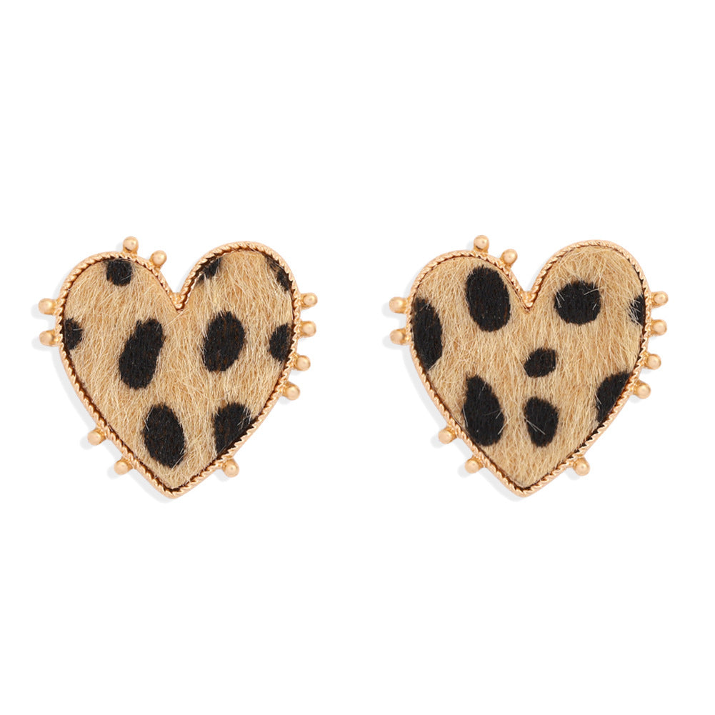 Retro Geometric Peach Heart Leopard Fabric Earrings