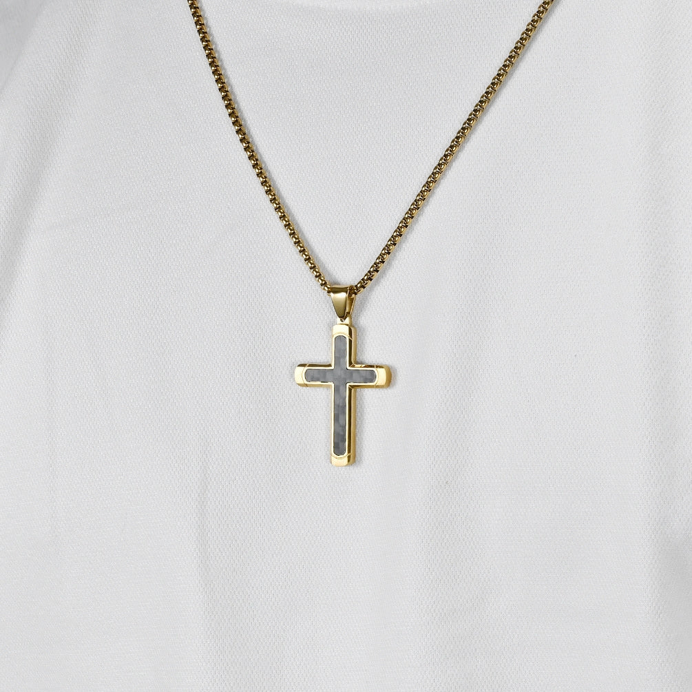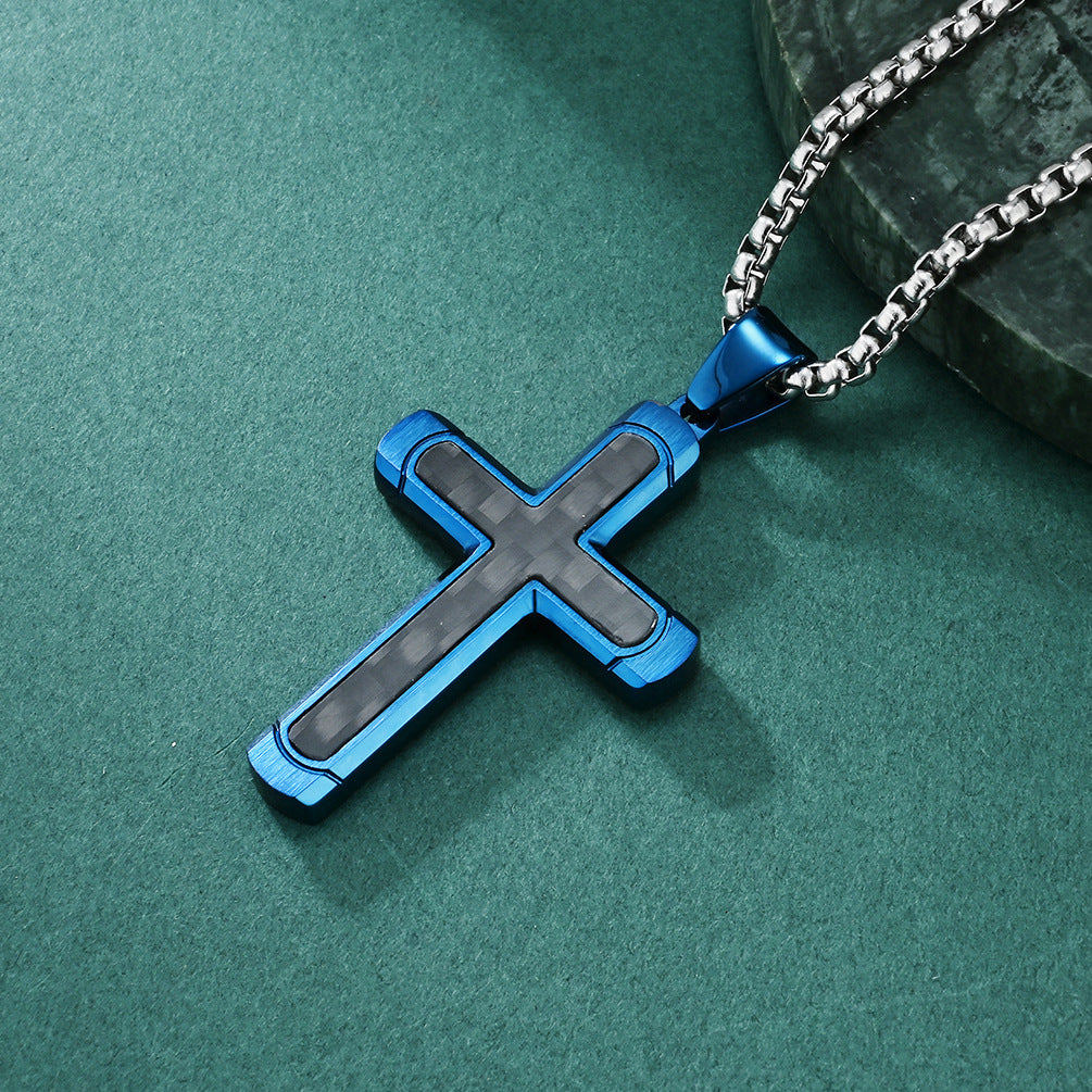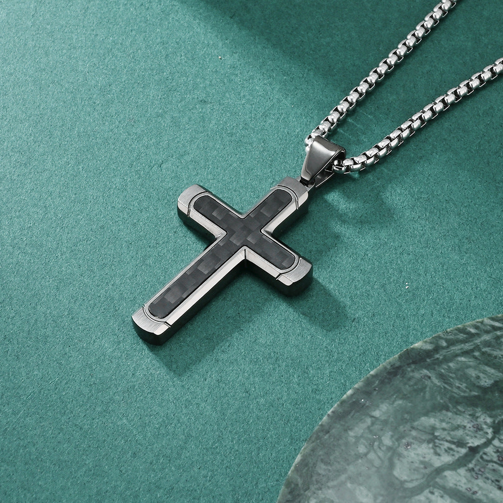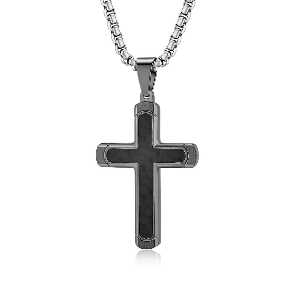 Retro Roman Cross Titanium Steel Carbon Inlay Men's Pendant Necklace