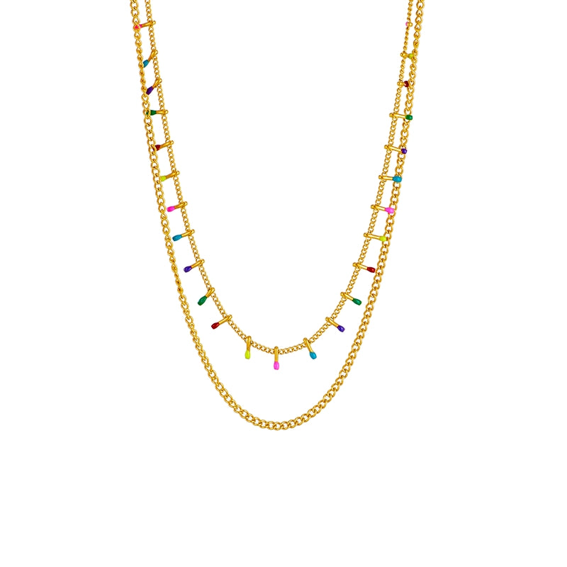 Retro Round Titanium Steel Enamel Layered Necklace for Women