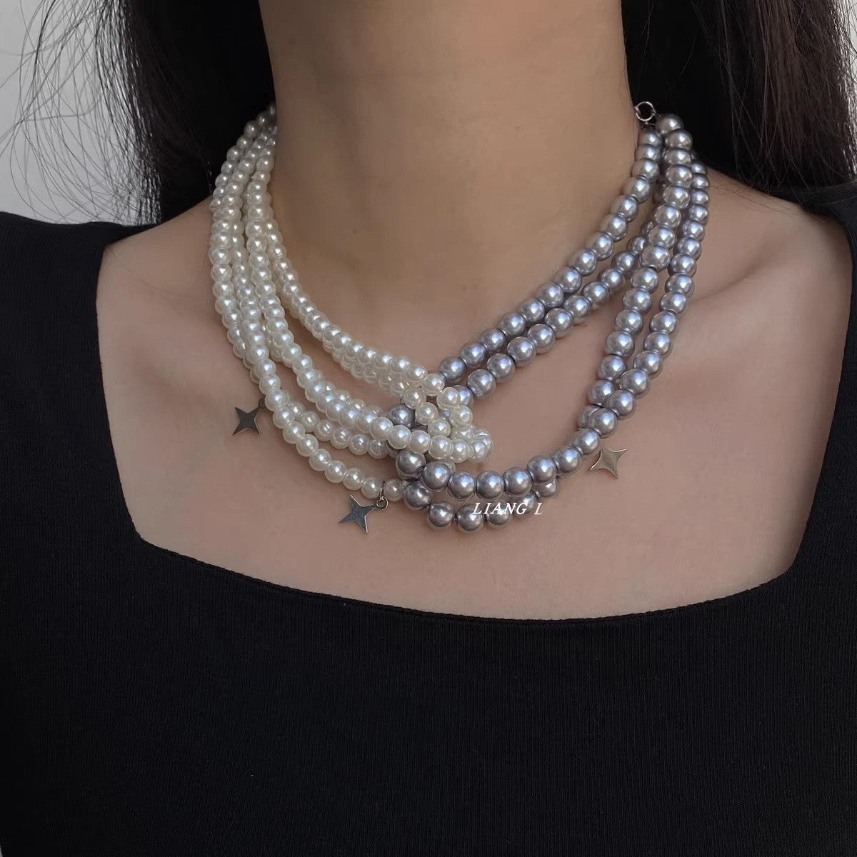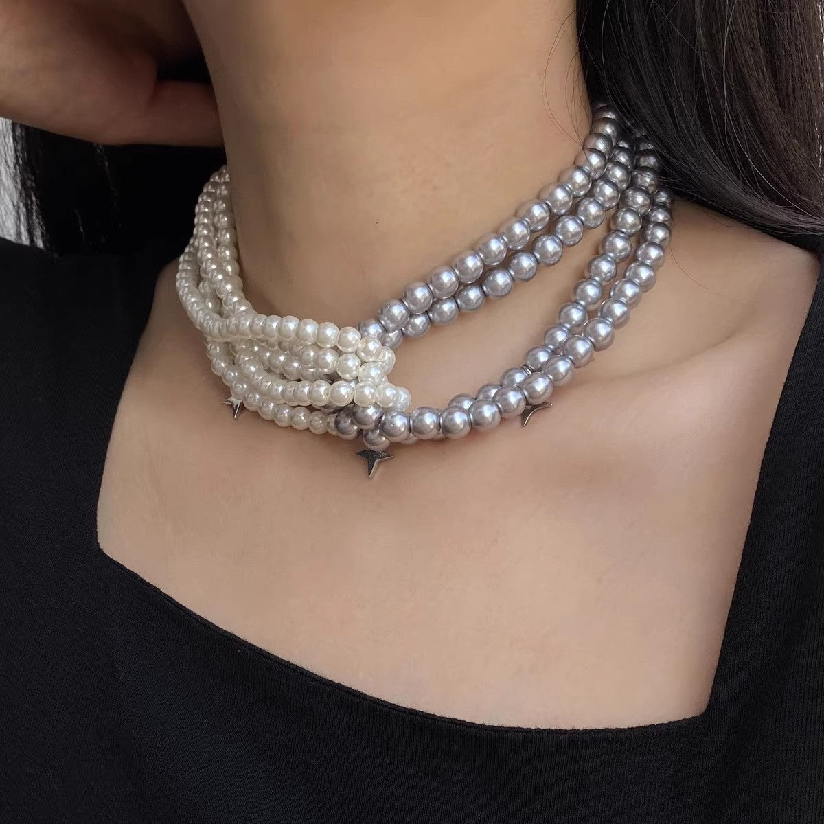 Retro Multi-Layered Pearl Necklace for Women - Vintage Statement Choker