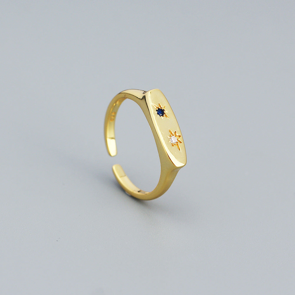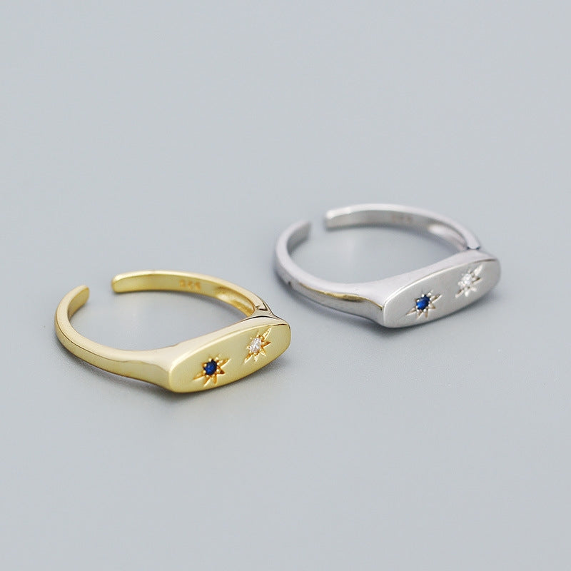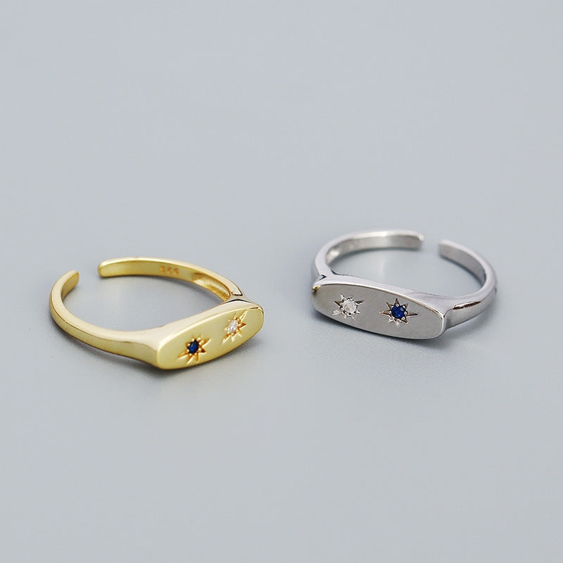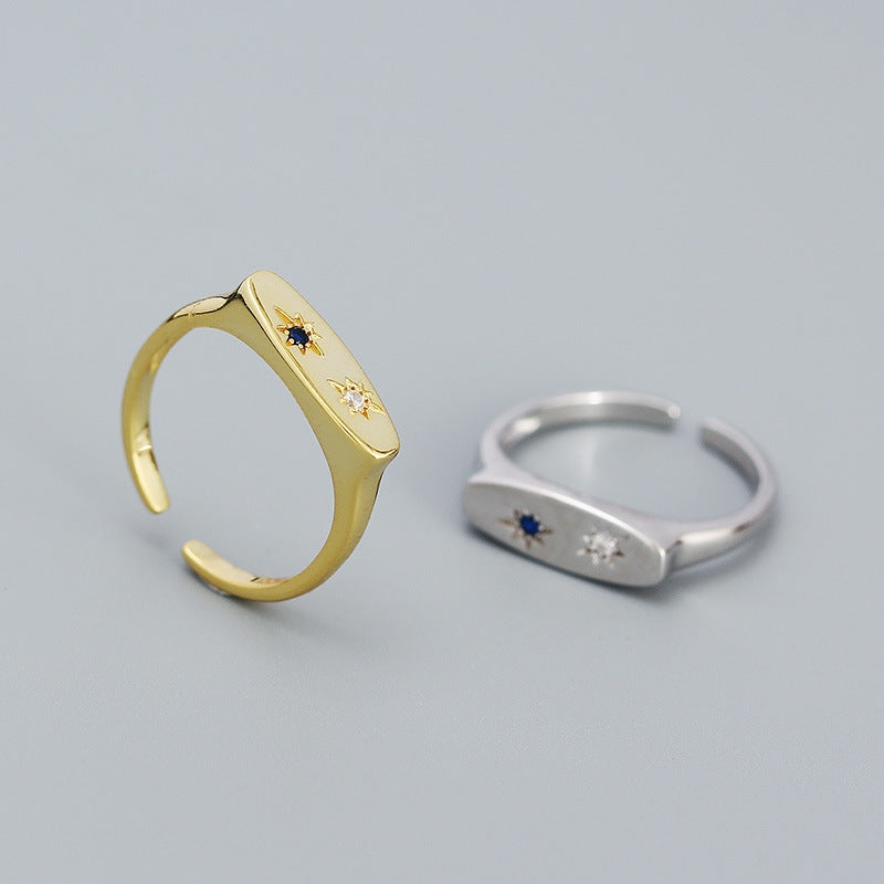 Retro Star Inlay Zircon 925 Sterling Silver Adjustable Rings