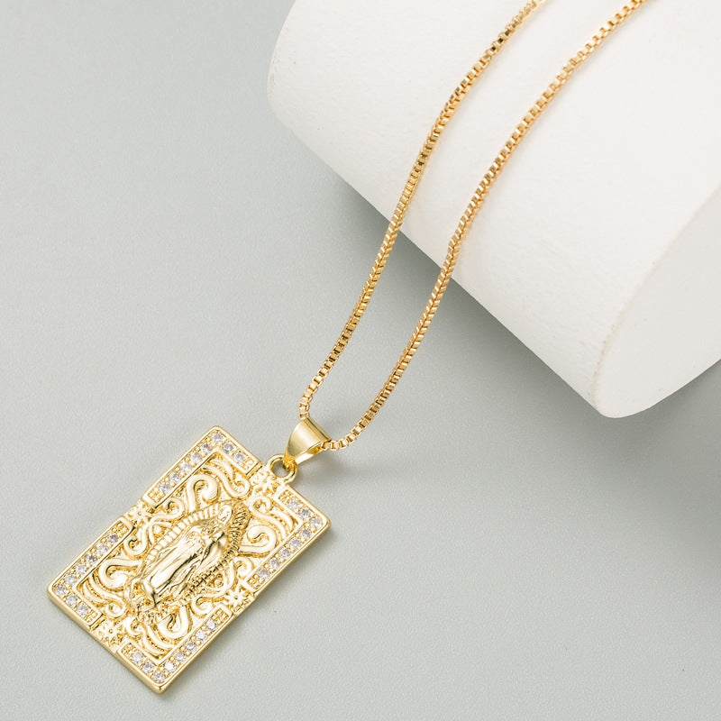 Retro Virgin Mary Square Copper Zircon Pendant Necklace
