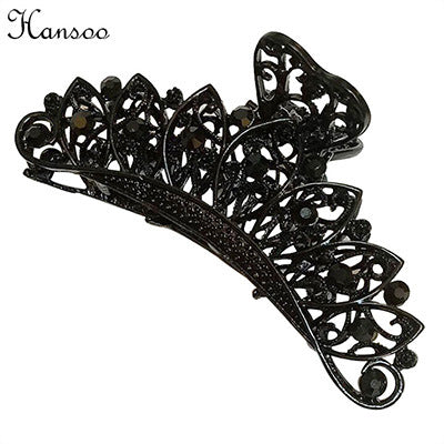Retro Waves Rhinestone Metal Hair Claw - Large Black Vintage Hair Accessory