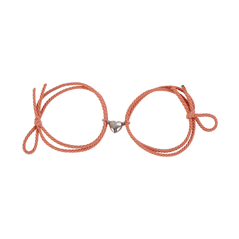 Heart-shaped Magnetic Couple Bracelets Set - Alloy Love Charm Rope Jewelry