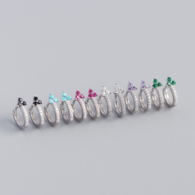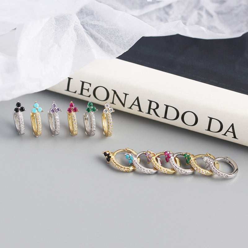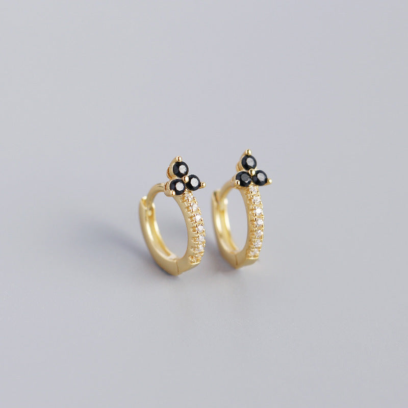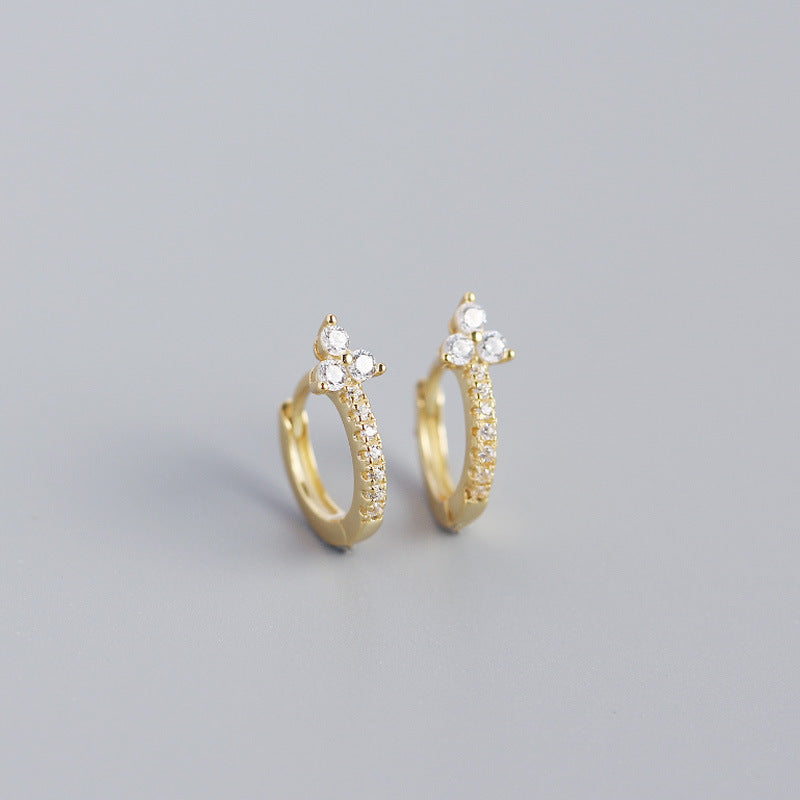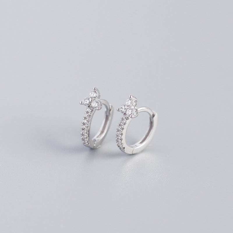 S925 Sterling Silver Geometric Floral Diamond Ear Cuff Stud Earrings for Women