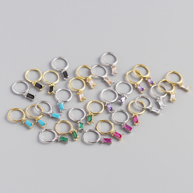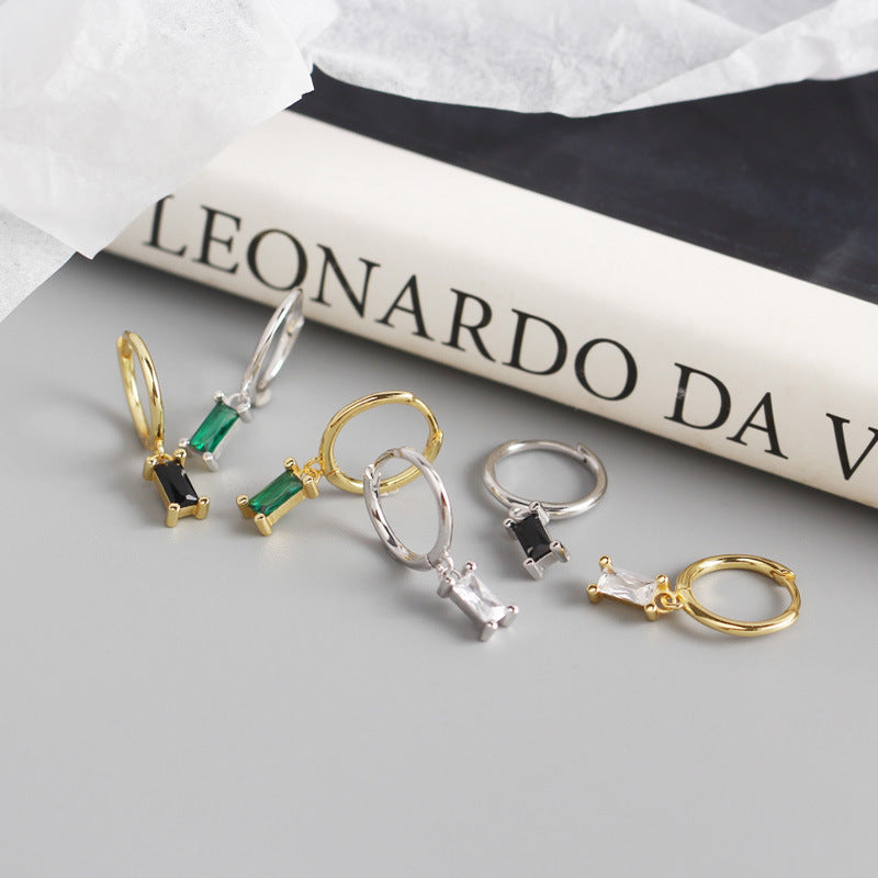 S925 Sterling Silver Minimalist Geometric Rectangular Zircon Earrings