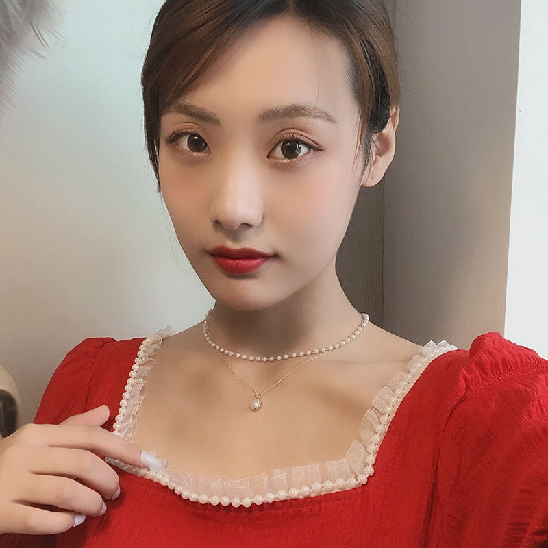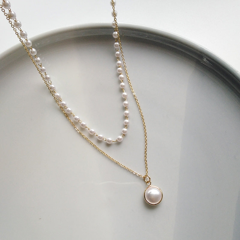 Simple Double-Layer Pearl Choker Necklace