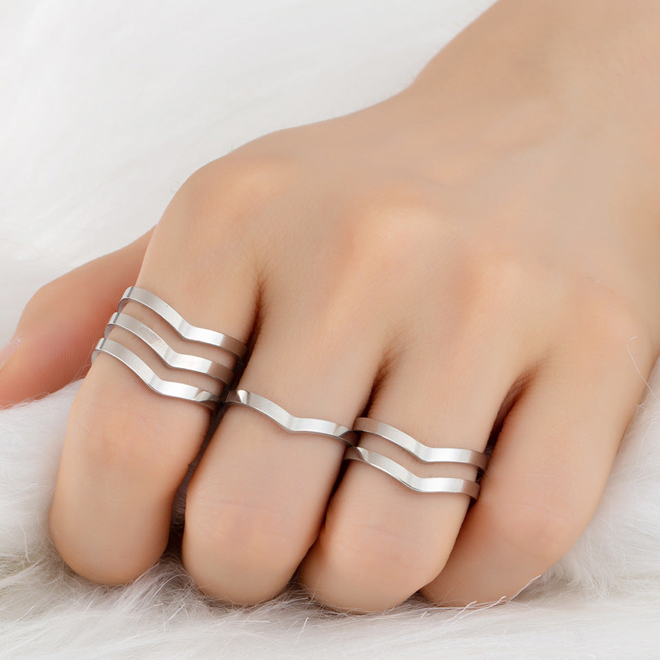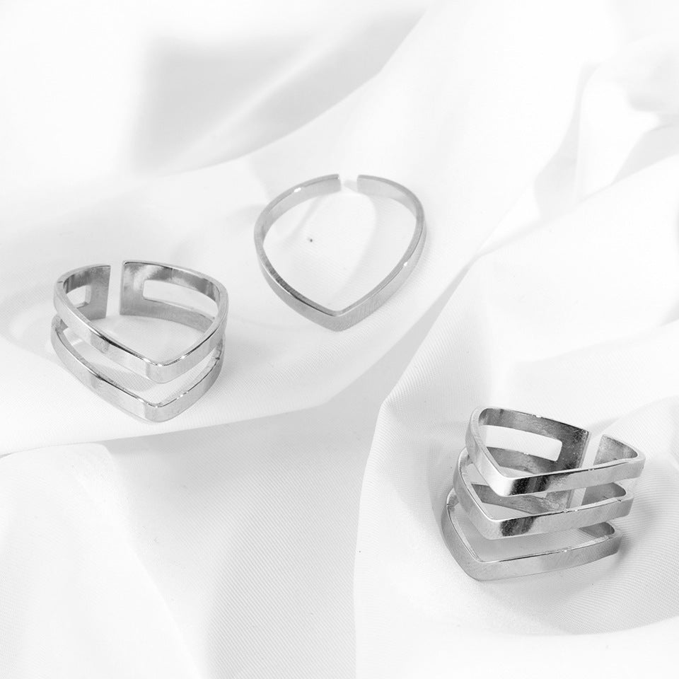 Simple Heart-Shaped Stainless Steel Adjustable Ring Set