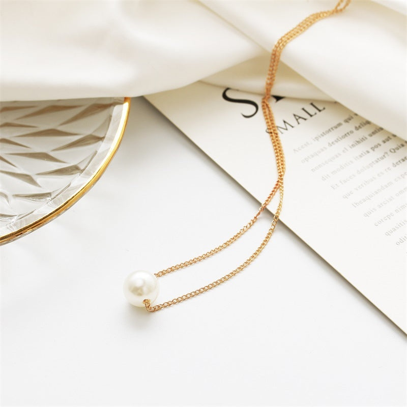 Simple Pearl Ball Short Necklace Korean Star Clavicle Chain