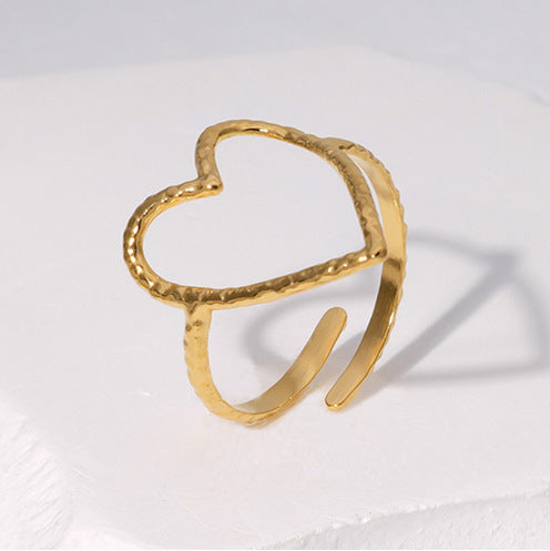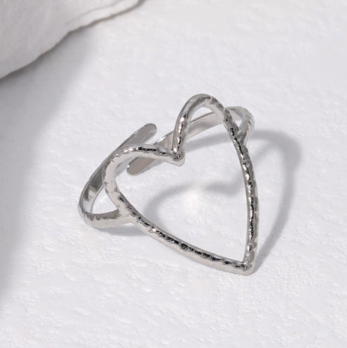 Simple Artistic Heart Shape Stainless Steel Gold and Silver Plated Adjustable Ring