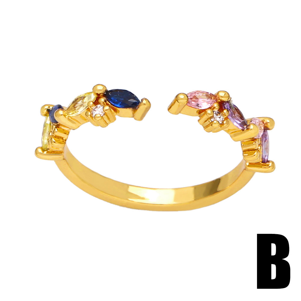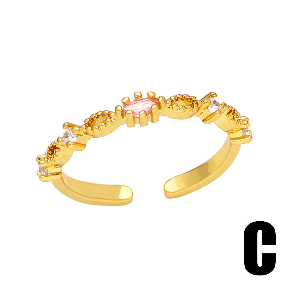 Simple Asymmetrical Irregular Gold Plated Zircon Open Ring for Women