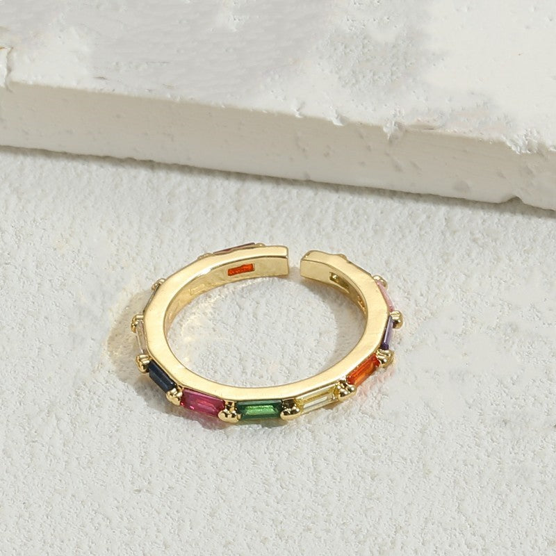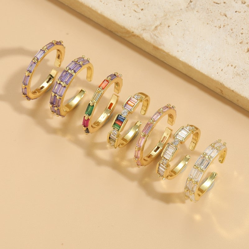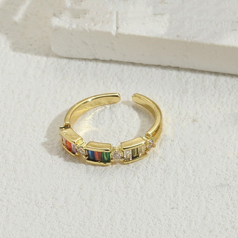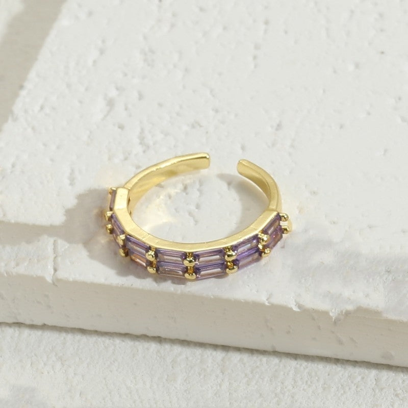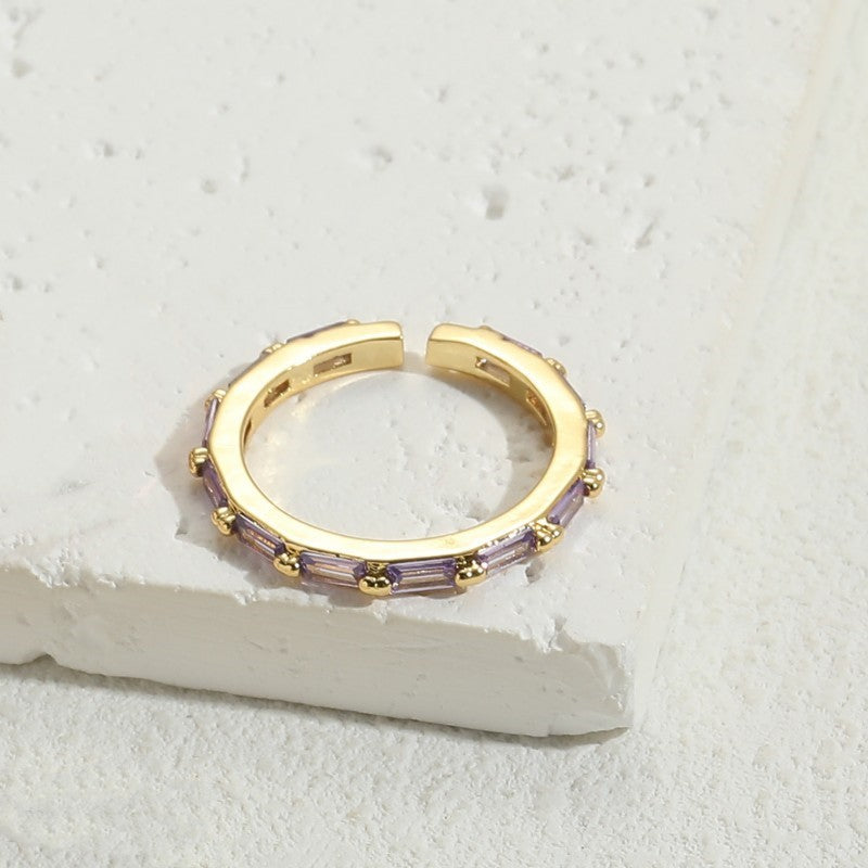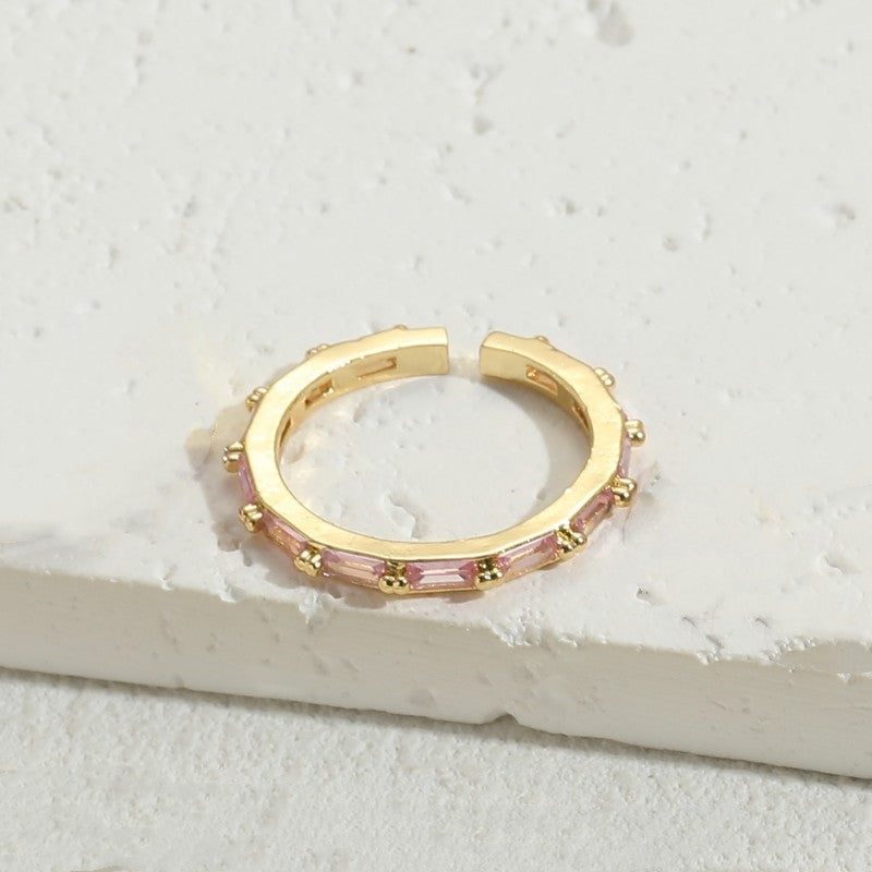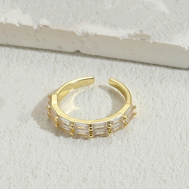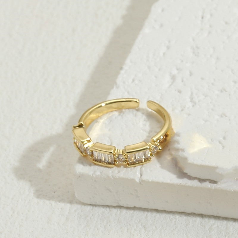 Simple Style Rectangle Copper Zircon 14k Gold Plated Open Ring