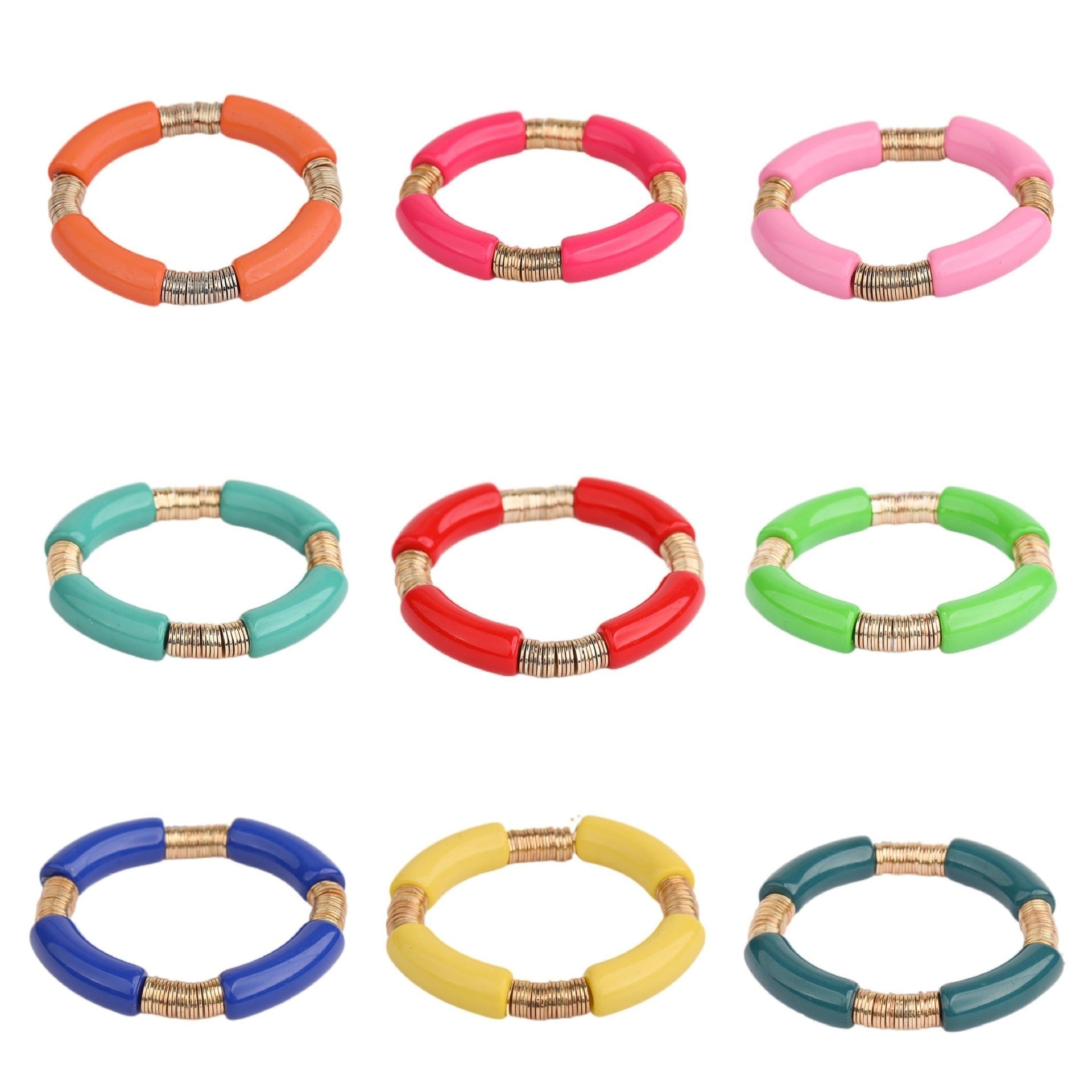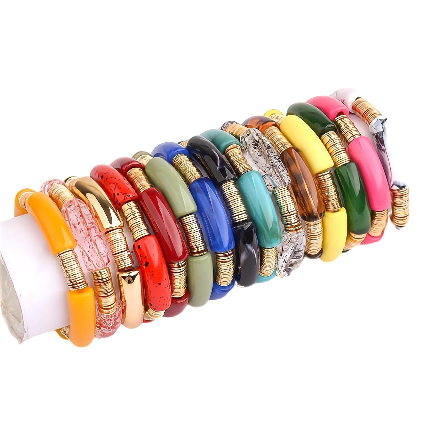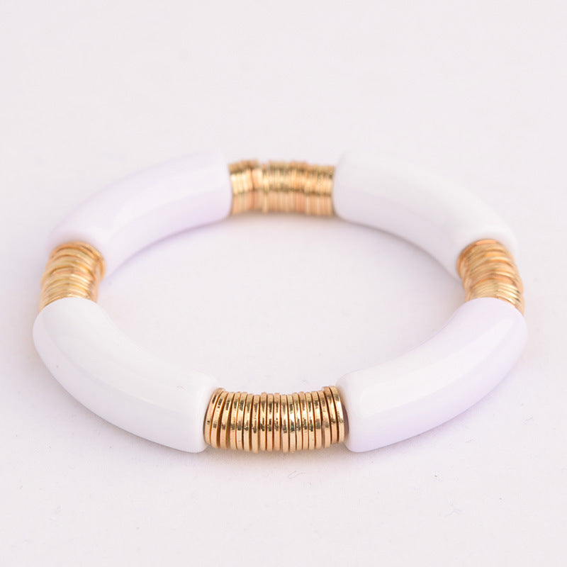 Simple Classic Round Acrylic Metal Beaded Bracelet