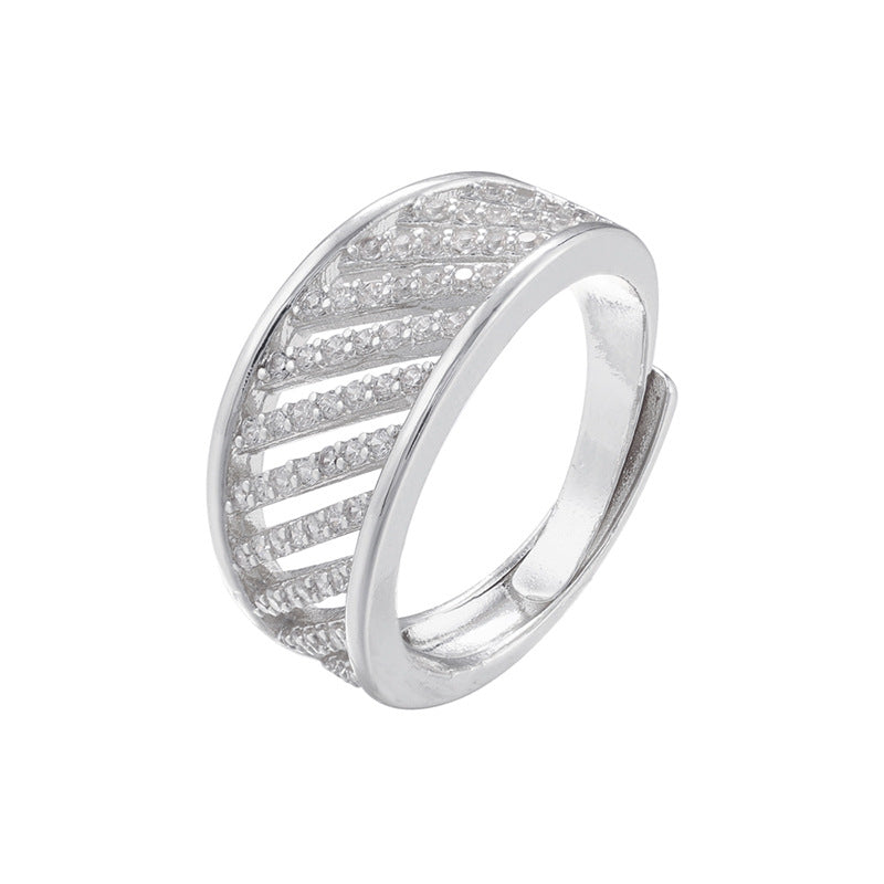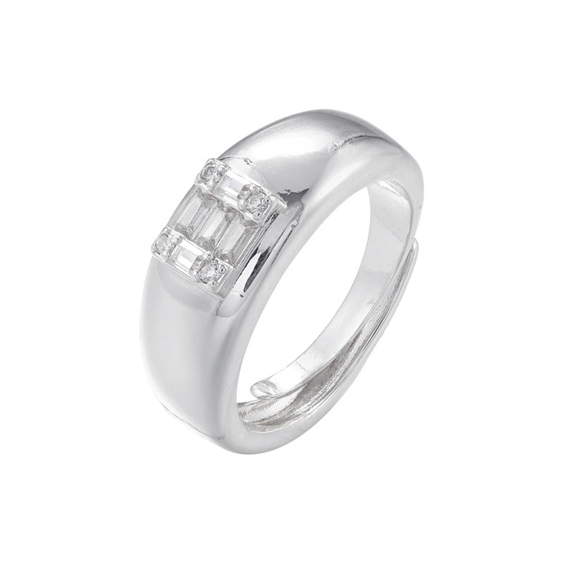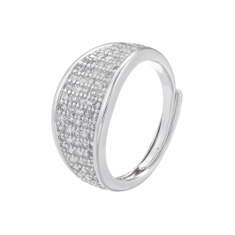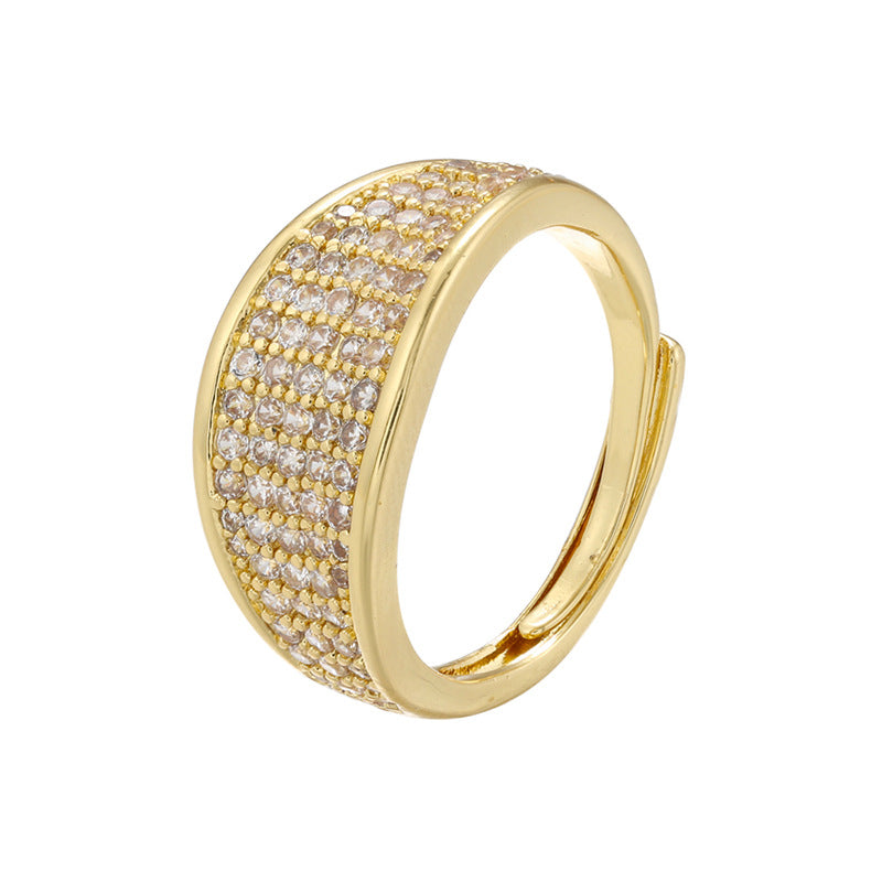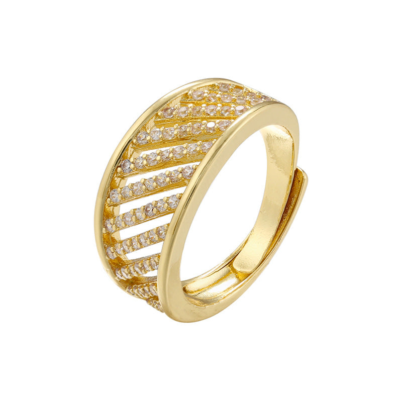 Simple Style Round Zircon Inlay 18K Gold Plated Adjustable Open Ring
