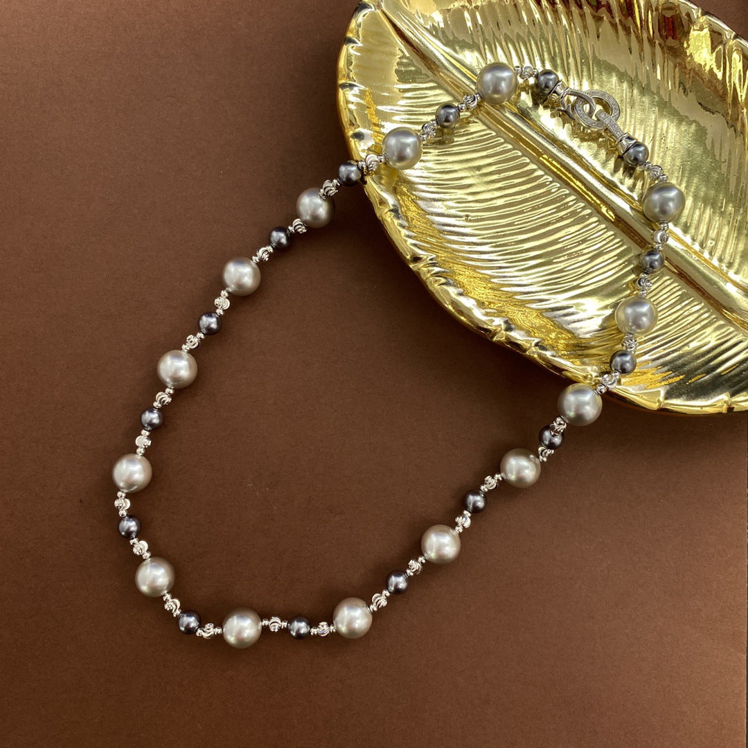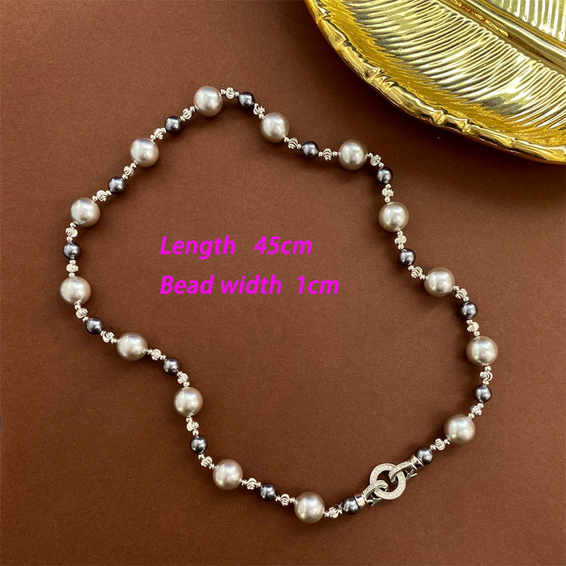 Simple Classic Round Imitation Pearl Necklace with Gray Pearl and High Carbon Diamond Clasp