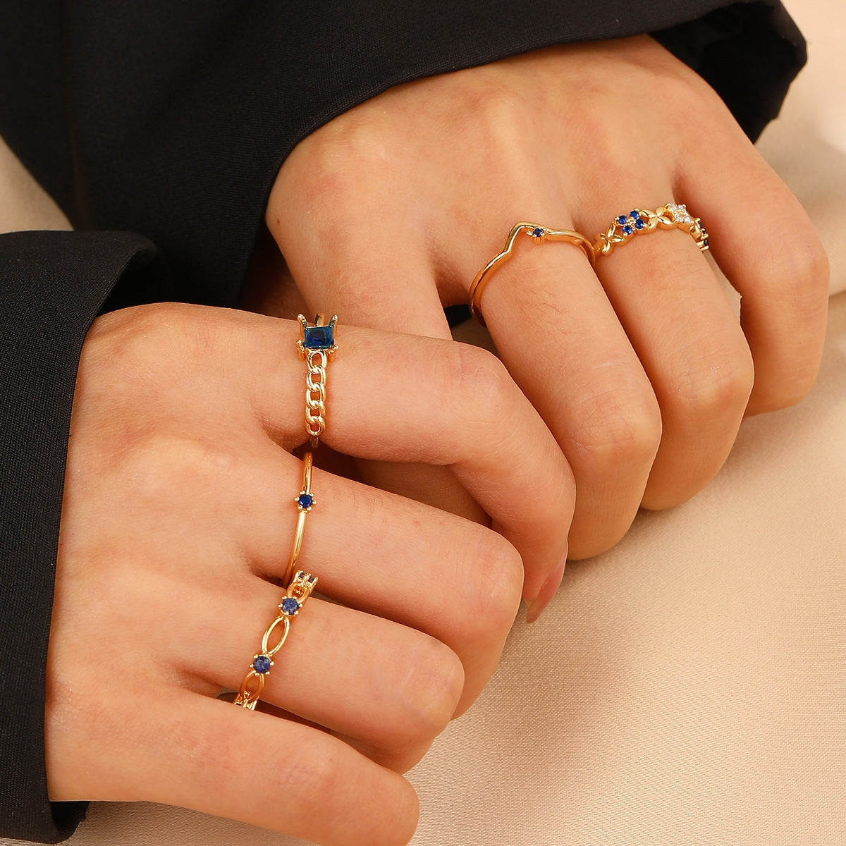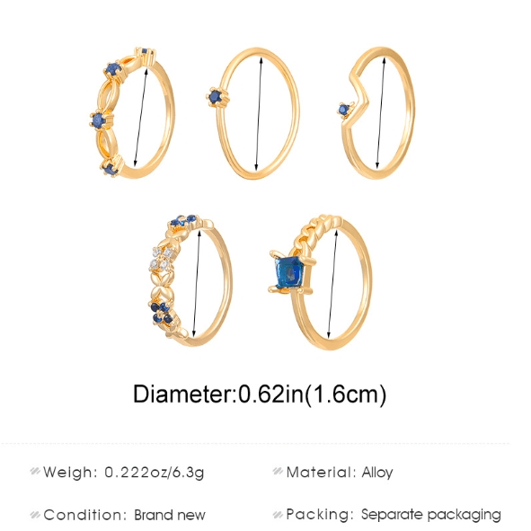 Simple Classic Star Alloy Rhinestone Women's Ring Set - 5 Piece Vintage Hollow Design