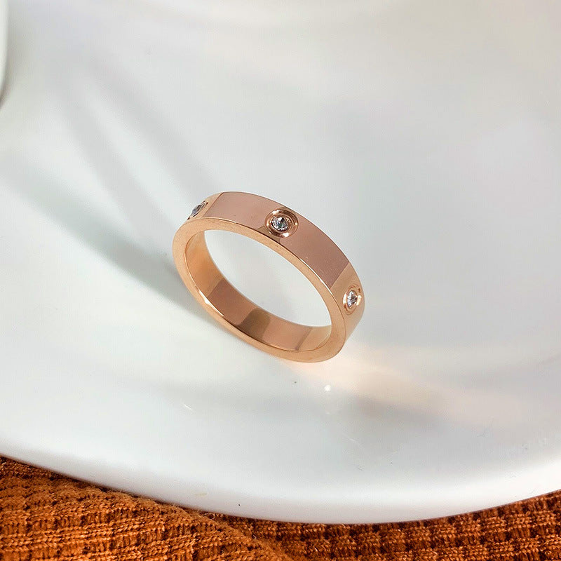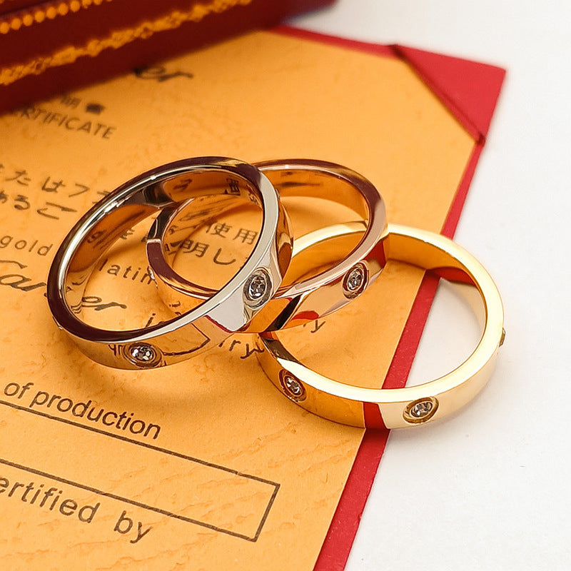 Simple Style Titanium Steel Rhinestone Couple Rings