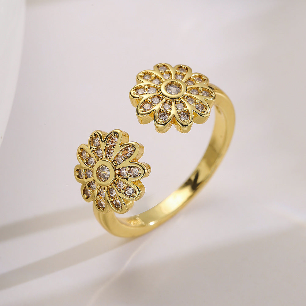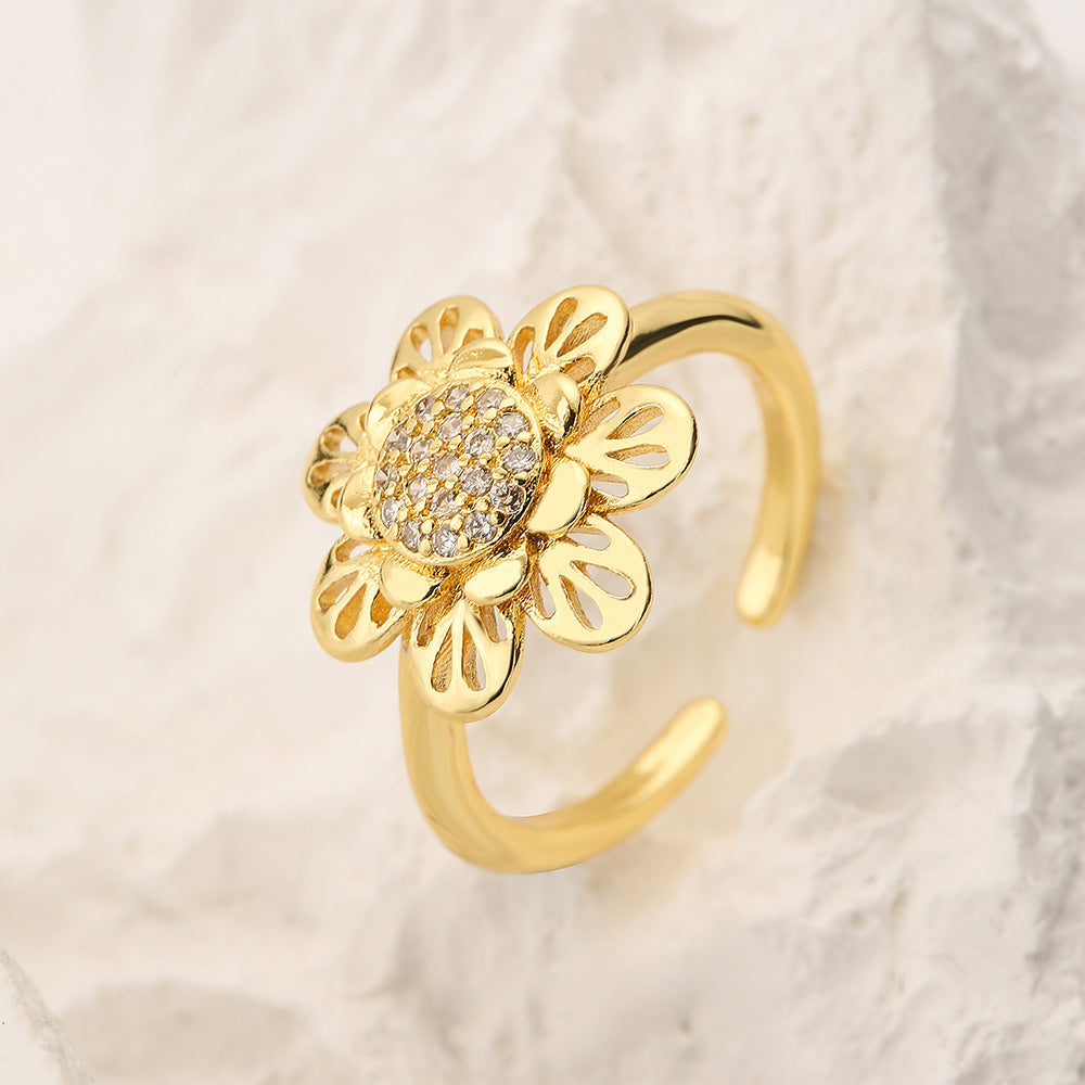 Minimalist Geometric Flower Zircon Open Ring in 18K Gold Plated Copper