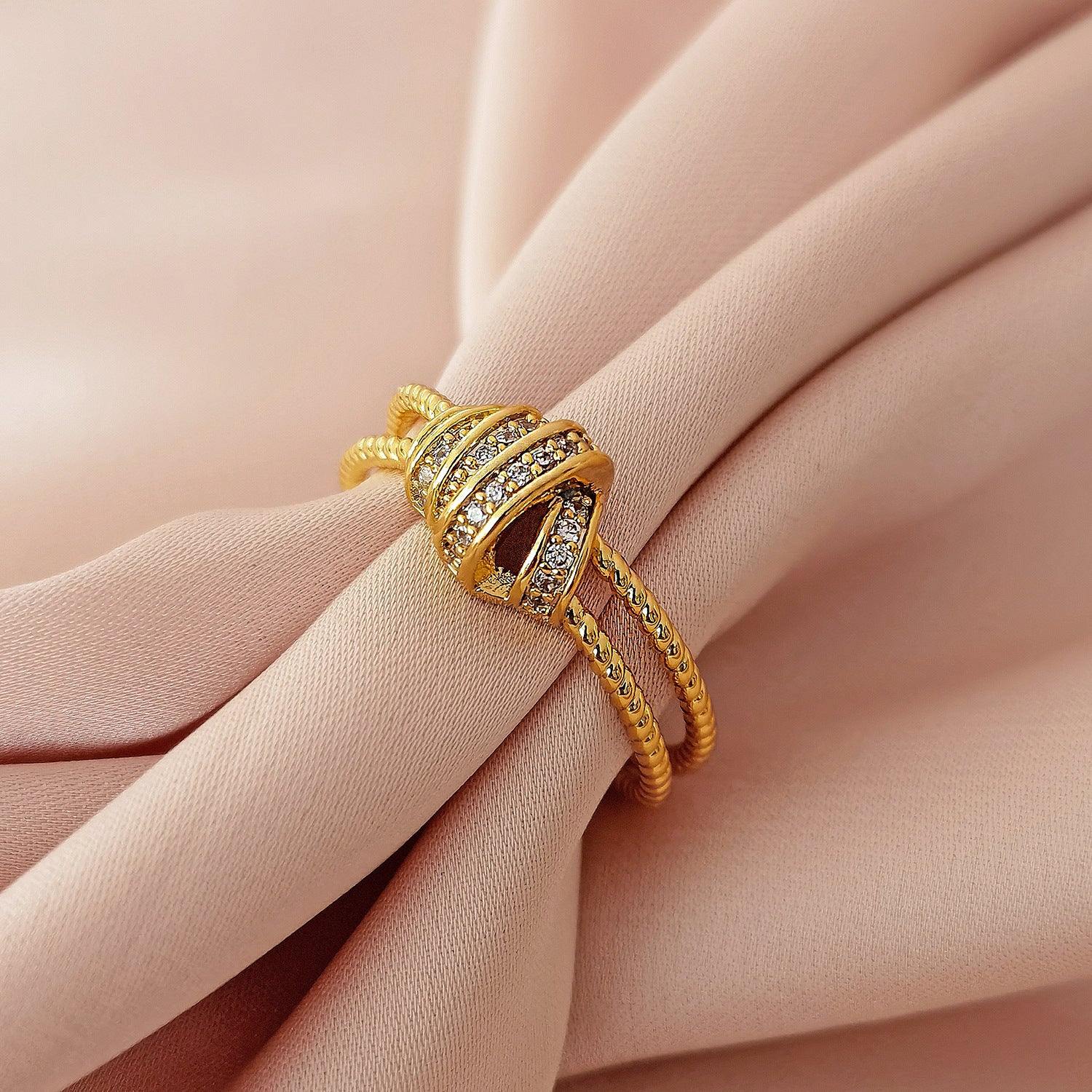 Simple Style 18K Gold Plated Zircon Open Ring for Women