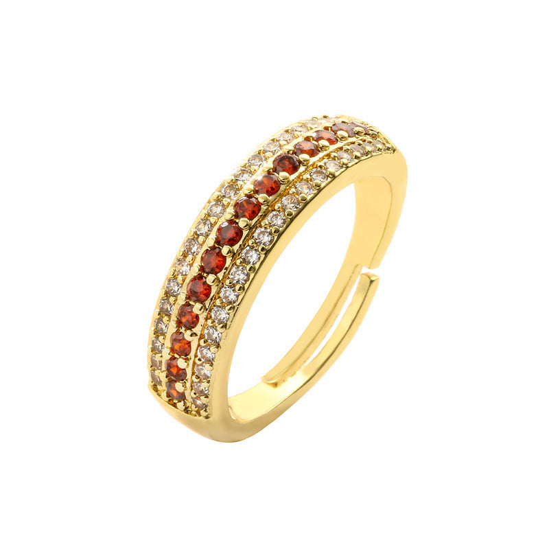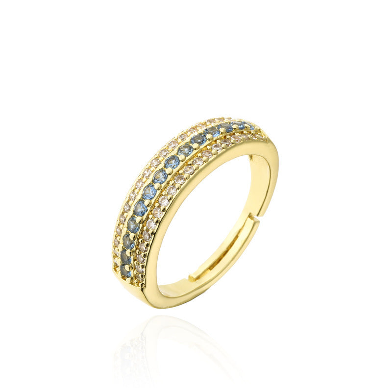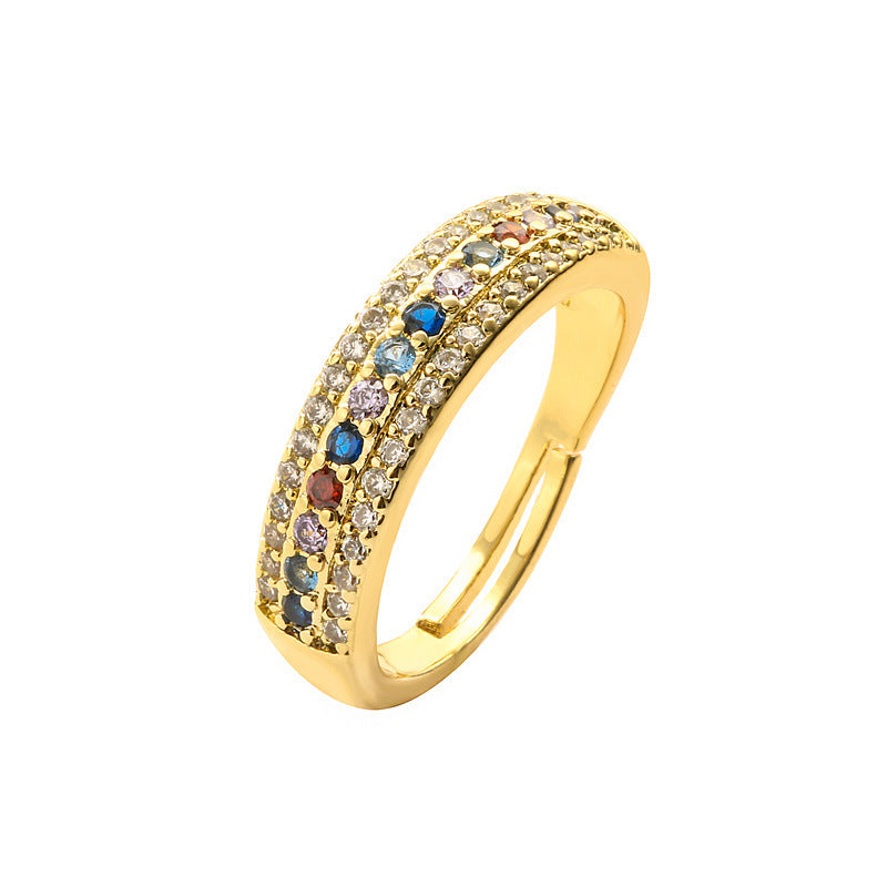 Simple Geometric Zircon Gold Plated Open Ring for Women