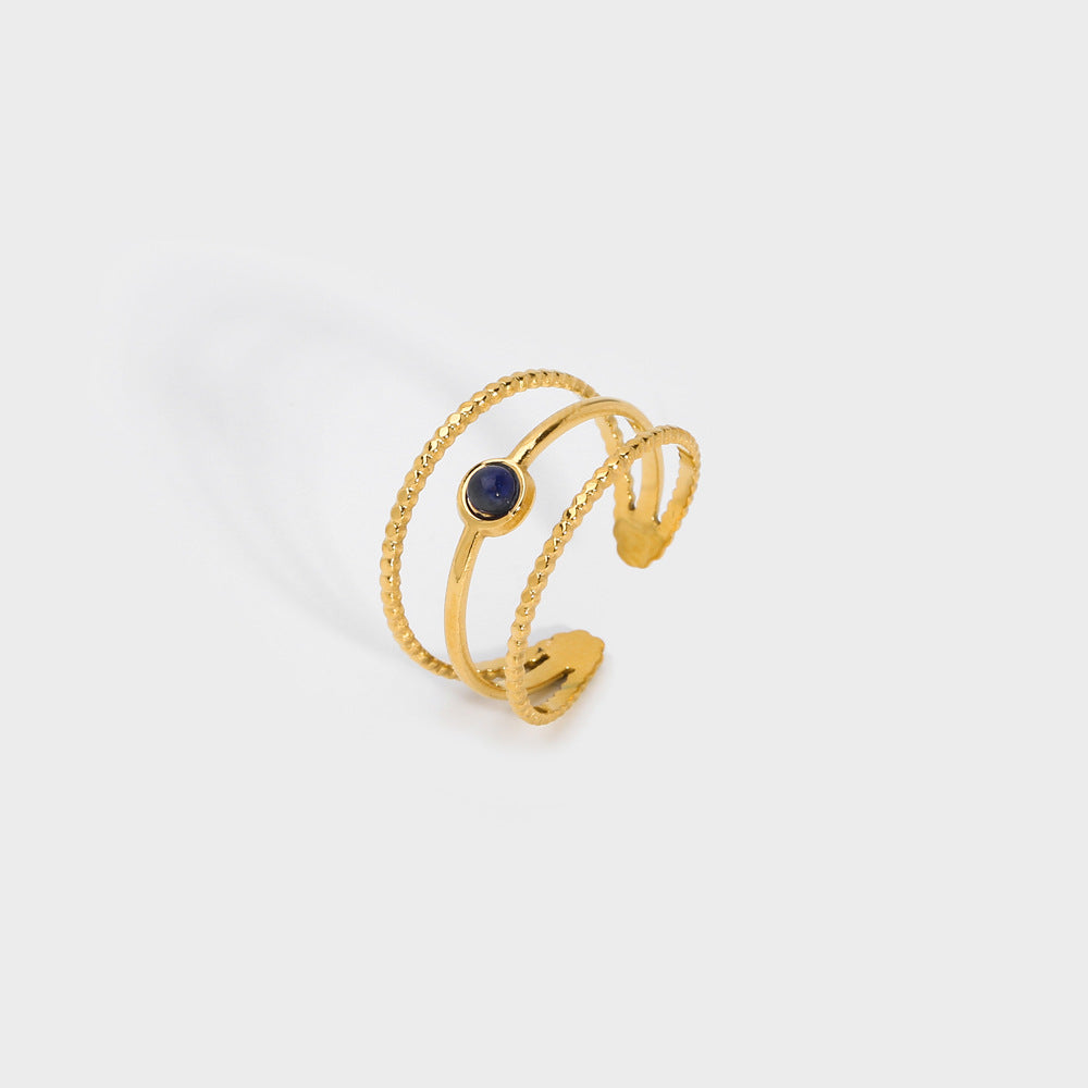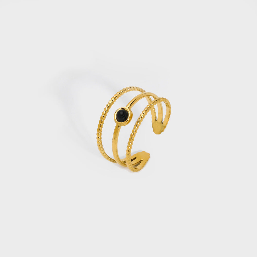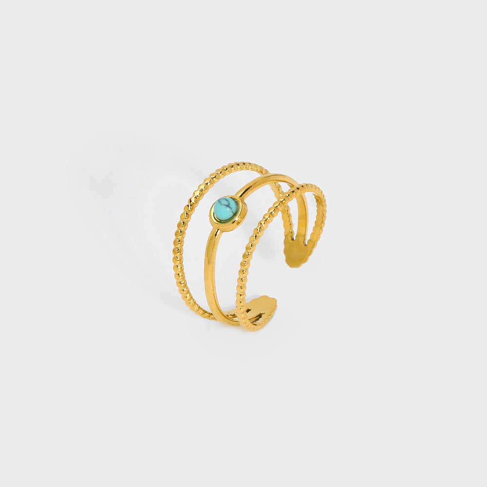 Simple Style Vintage Natural Stone 18k Gold Stainless Steel Open Ring