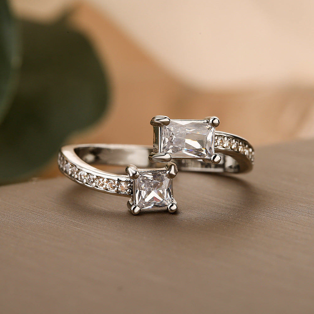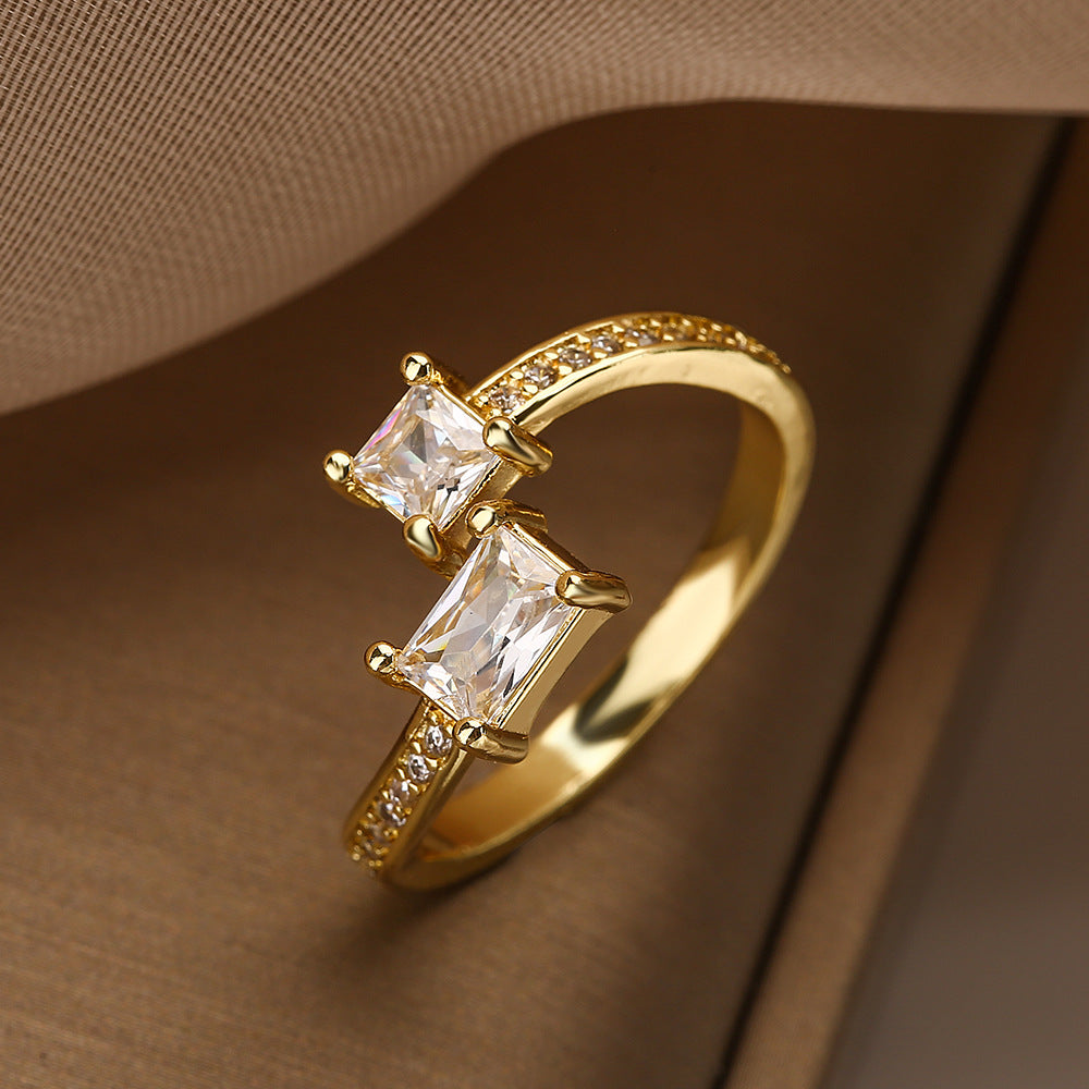 Minimalist Geometric Zircon 18K Gold Plated Open Ring for Women